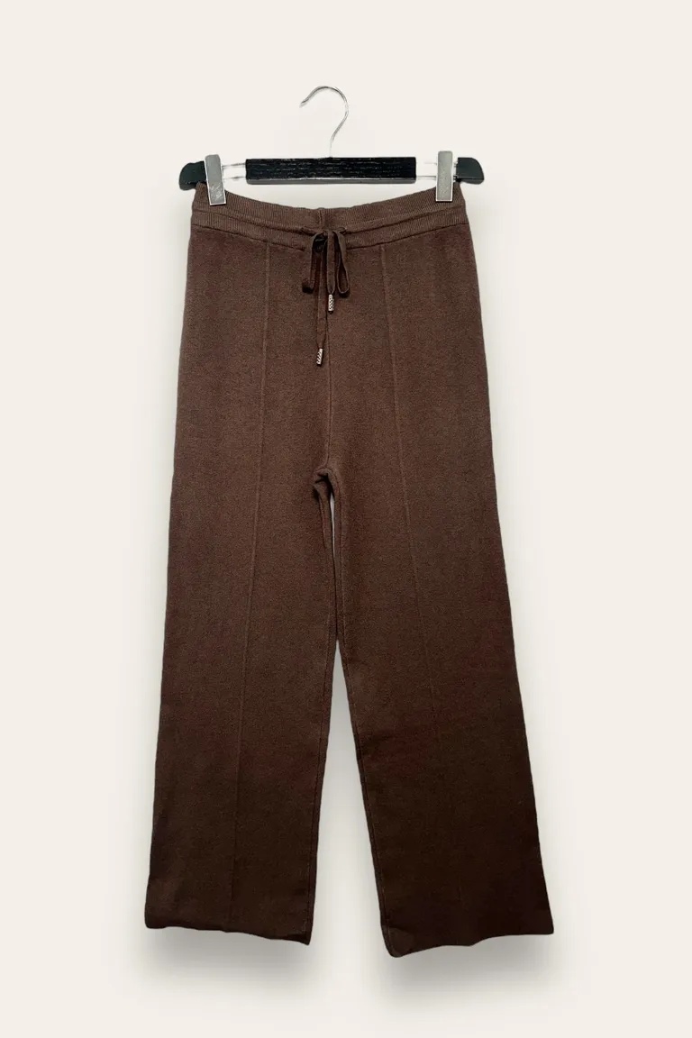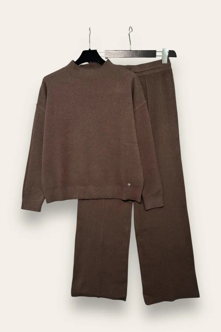 * Completo due pezzi coordinato* Maglia a maniche lunghe con collo rotondo* Fondo e polsini a costine* Pantaloni a gamba larga con fascia in vita elasticata* Tessuto morbido e confortevole* Stile casual e rilassato