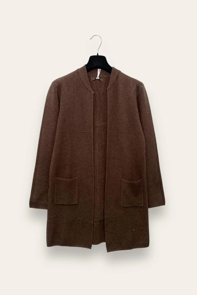 * Cardigan lungo aperto* Collo semplice senza revers* Tasche frontali applicate* Maniche lunghe* Linea morbida e confortevole* Stile casual e versatile