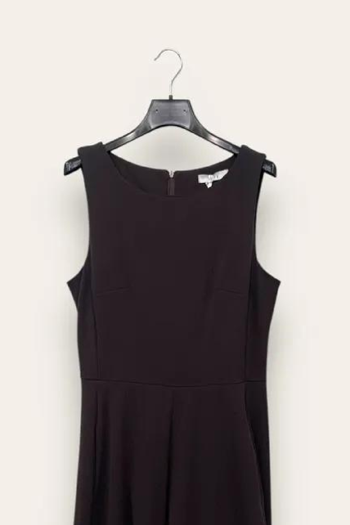 * Abito senza maniche* Scollo rotondo* Linea aderente sul busto* Gonna svasata con pieghe leggere* Chiusura posteriore con zip* Stile elegante e minimalista