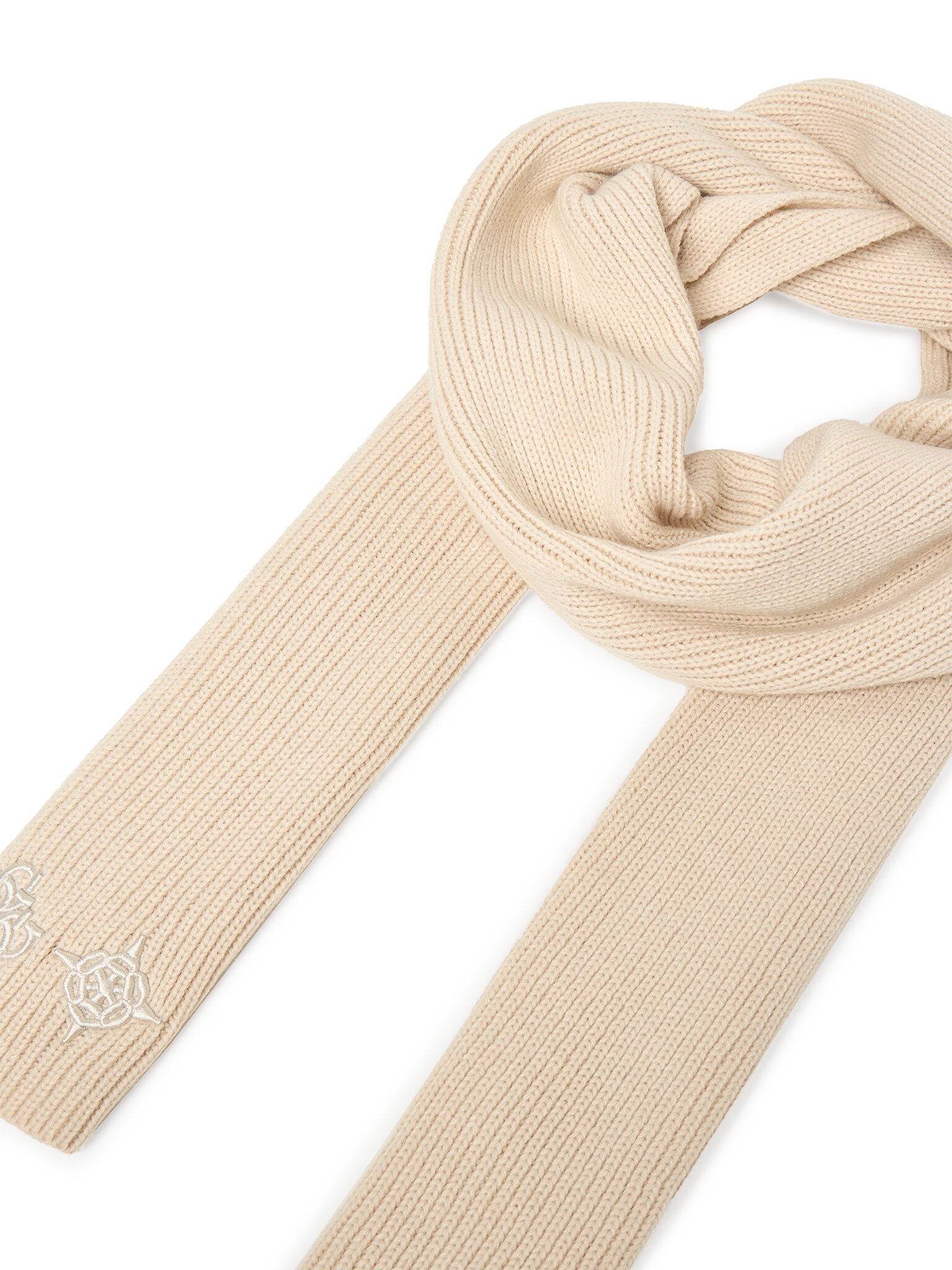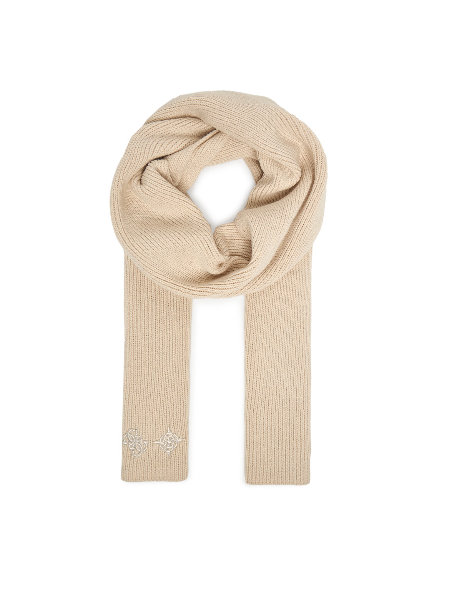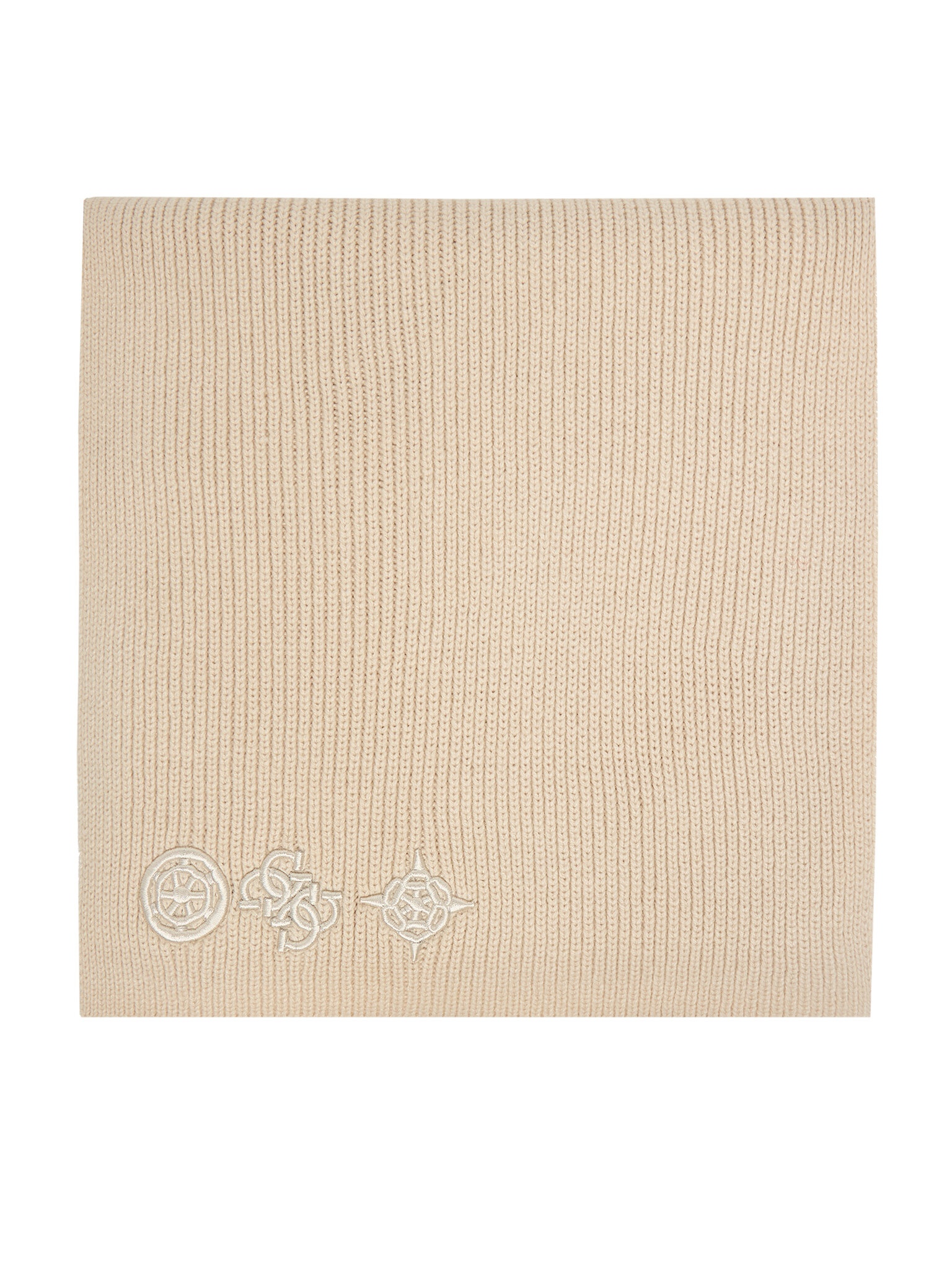 * Sciarpa lavorata a maglia.* Forma ad anello.* Presenza di un logo ricamato nella parte inferiore.* Texture a coste.* Accessorio per il collo.* Design compatto e avvolgente.
