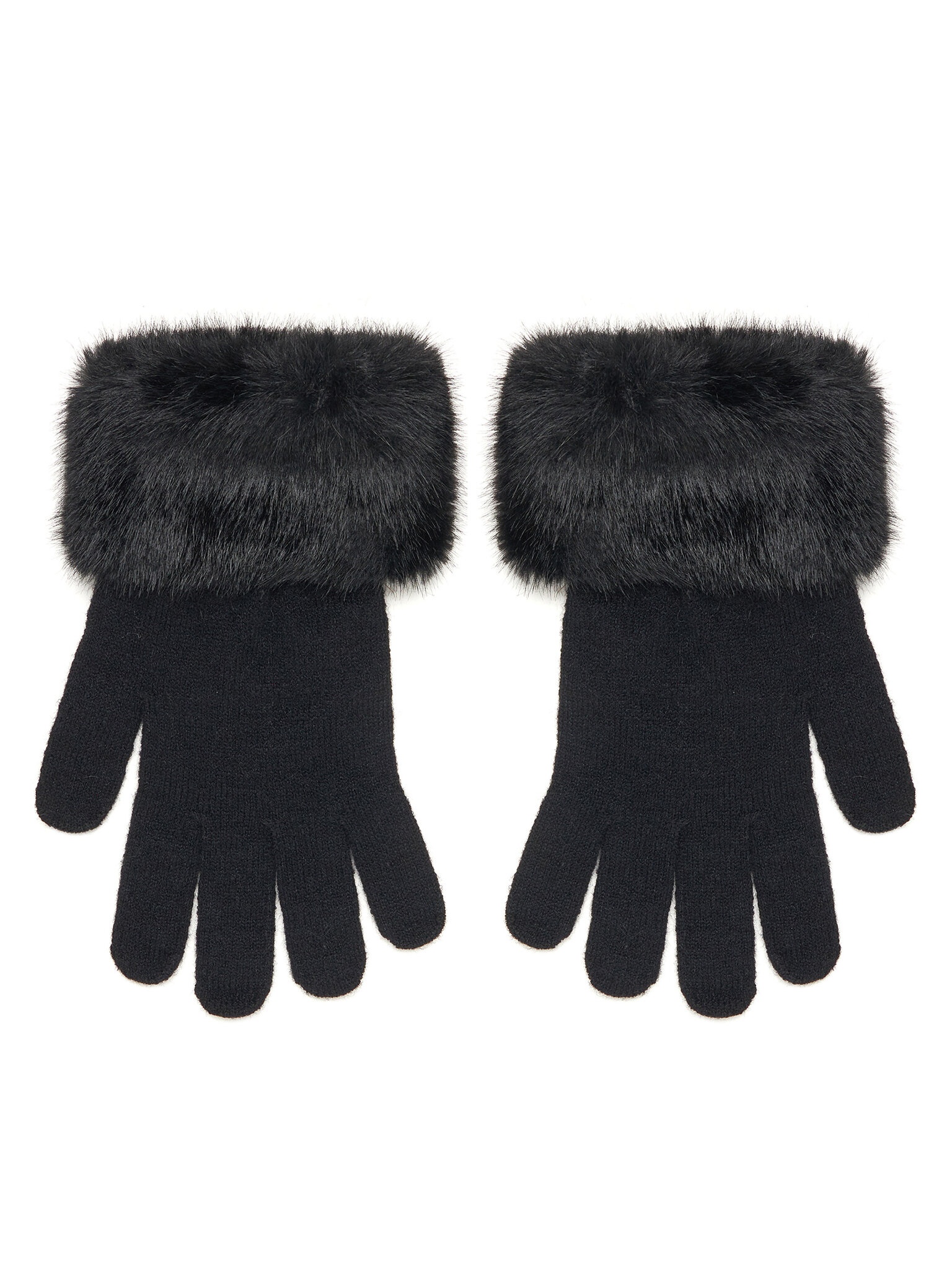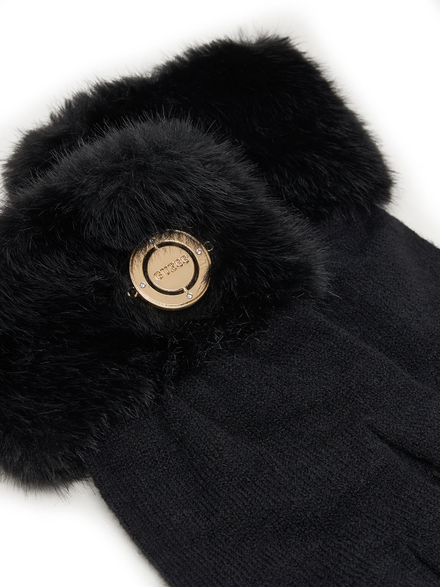 * Guanti* Parte superiore con dettaglio in pelo* Elemento decorativo metallico con marchio sul polsino* Modello a cinque dita* Tessuto liscio sulla parte inferiore