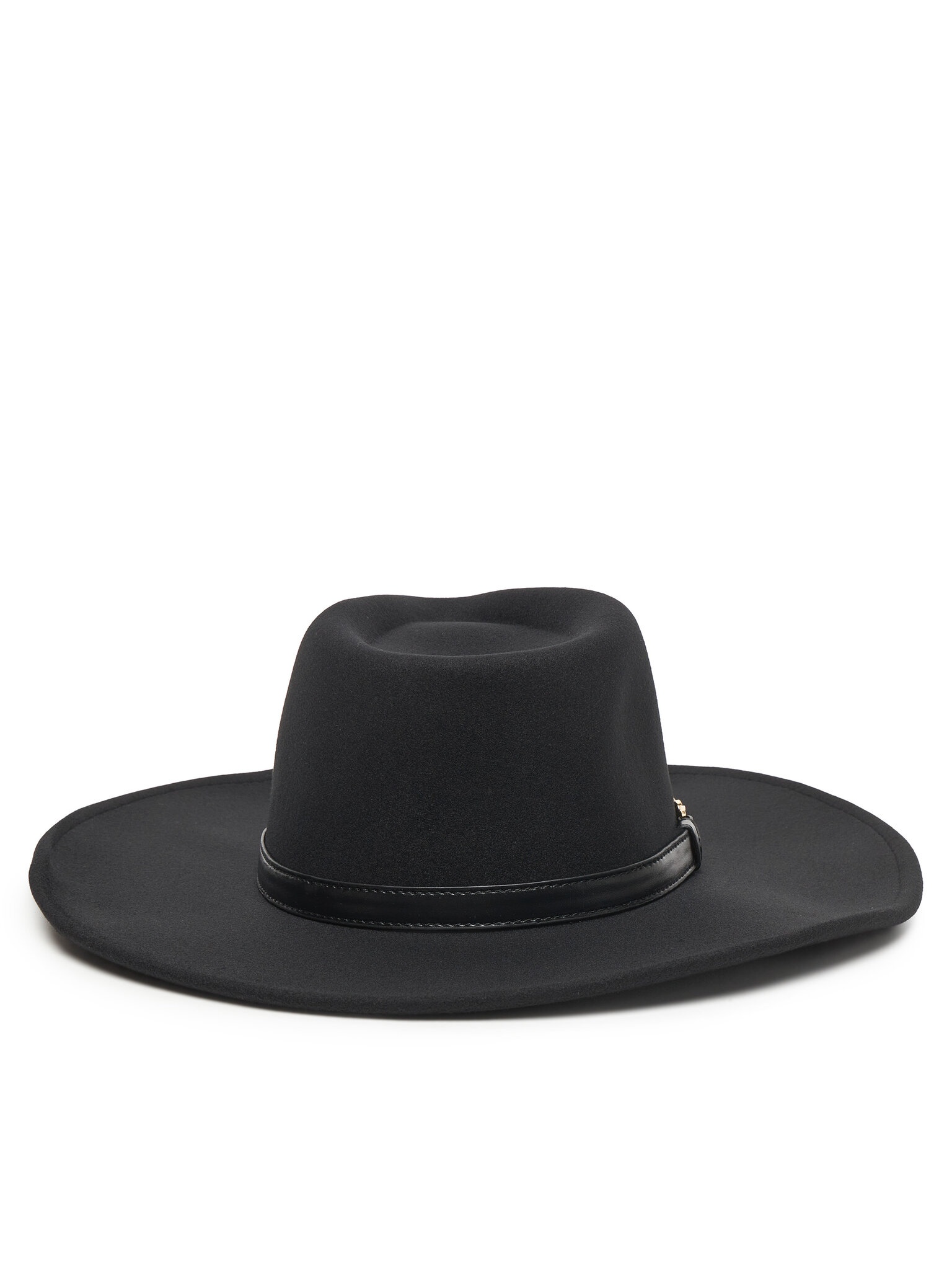 * Cappello a tesa larga.* Forma strutturata con calotta definita.* Fascia decorativa con dettaglio metallico.* Presenza del logo sul dettaglio metallico.* Materiale morbido e strutturato.* Accessorio per completare l'outfit.