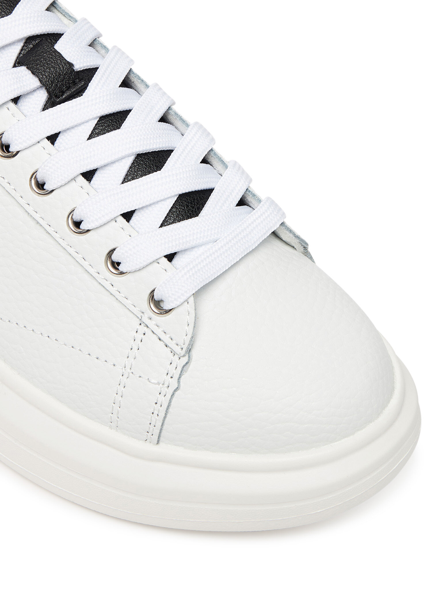 Sneakers con tomaia in pelle bottalata Logo lettering Inserto effetto laminato sul tallone e sulla linguetta Lacci piatti Suola bold