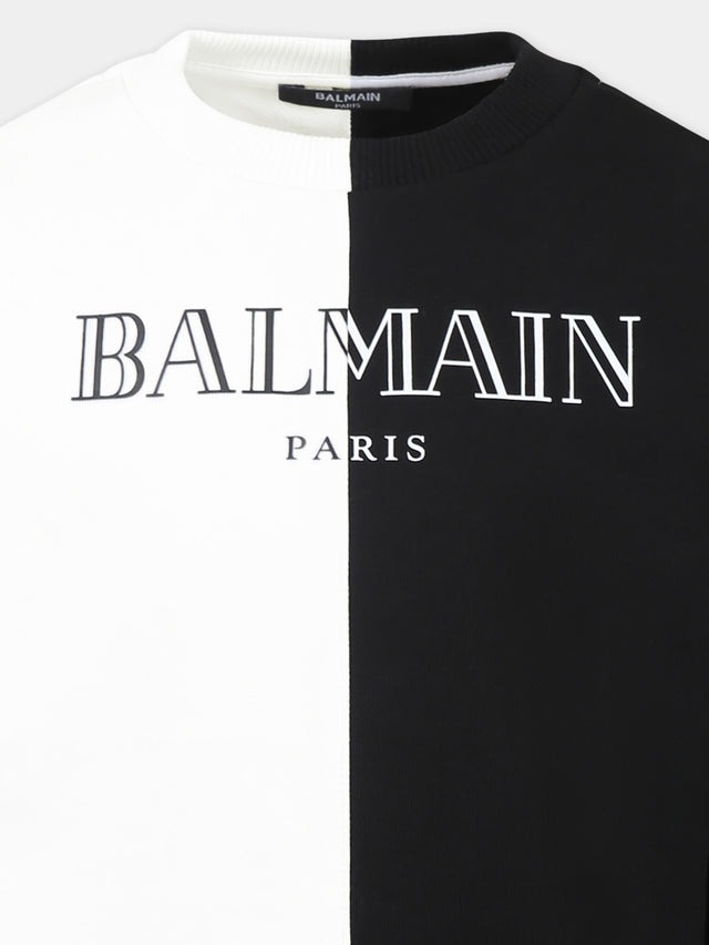 Felpa multicolor in cotone organico garzato, a maniche lunghe, con girocollo, polsini e orlo a costine. È decorata con logo Balmain bianco e nero sul davanti.