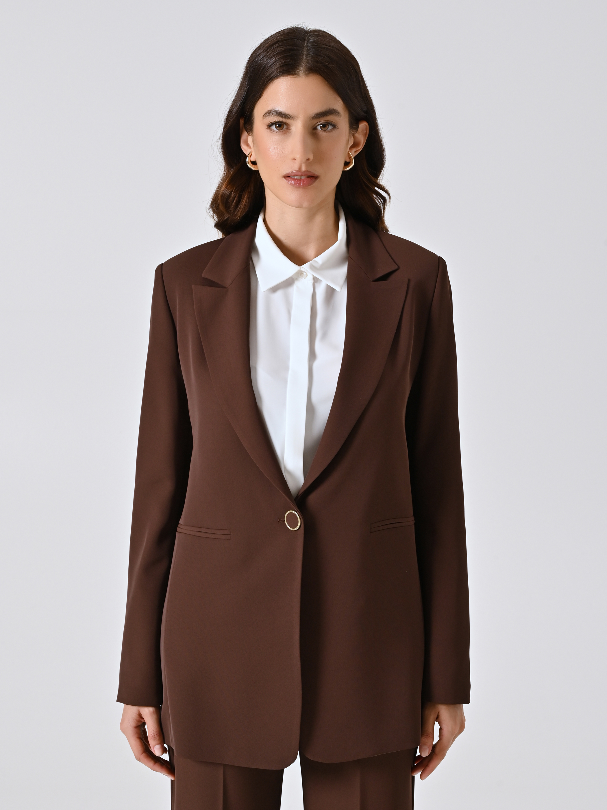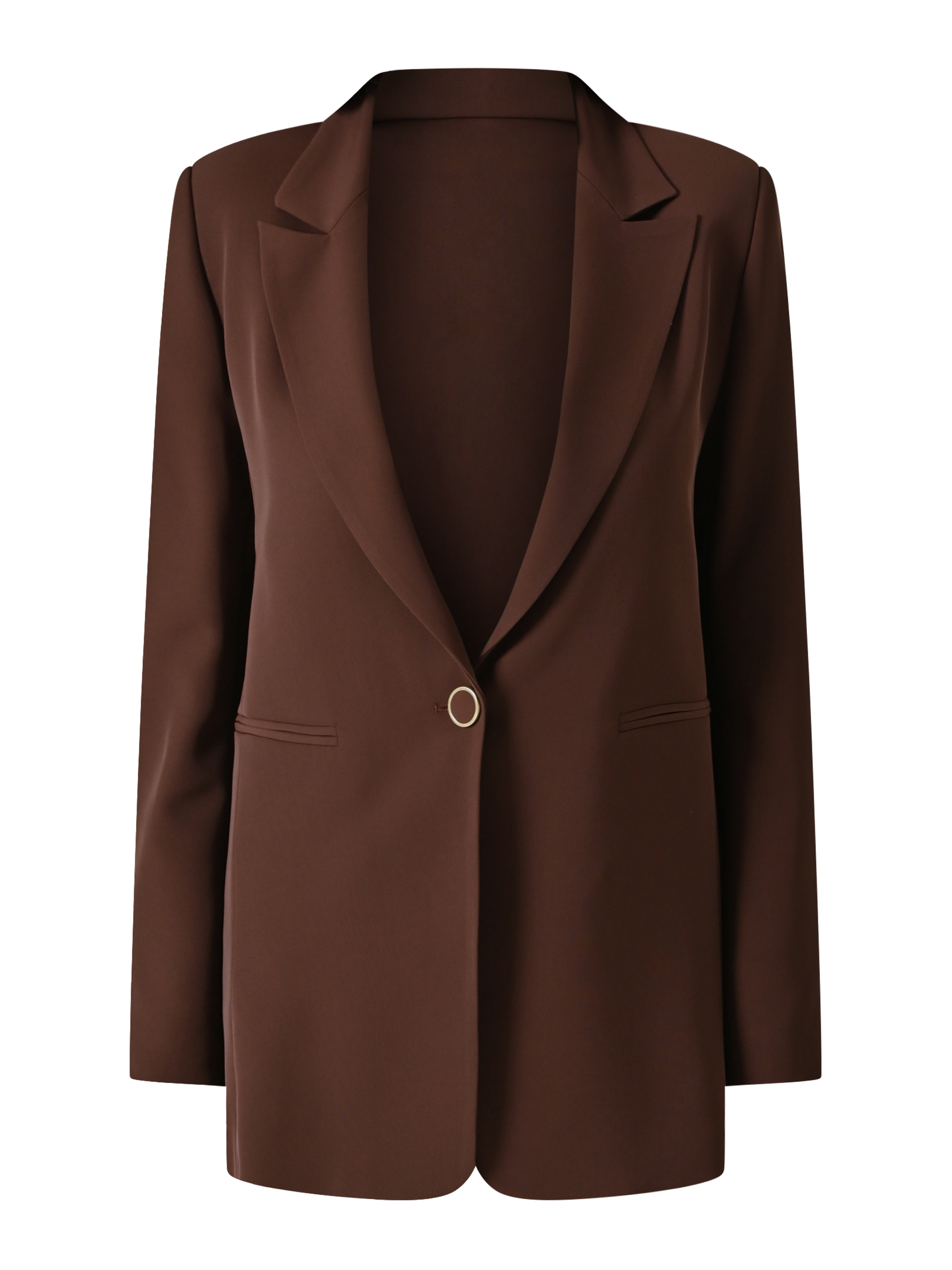 * Blazer elegante a maniche lunghe* Collo con revers classico* Chiusura frontale con bottone singolo* Tasche anteriori a filetto* Fodera interna liscia* Linea sartoriale e femminile
