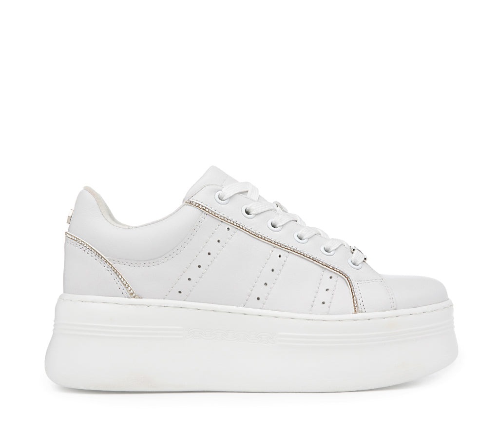 Linee pulite, spirito deciso. Questa sneaker reinterpreta l’essenzialità con carattere. La suola platform scolpisce la silhouette, mentre i dettagli minimal enfatizzano la forza del bianco assoluto. Nessun eccesso, solo identità. Un'icona urbana in chiave contemporanea.