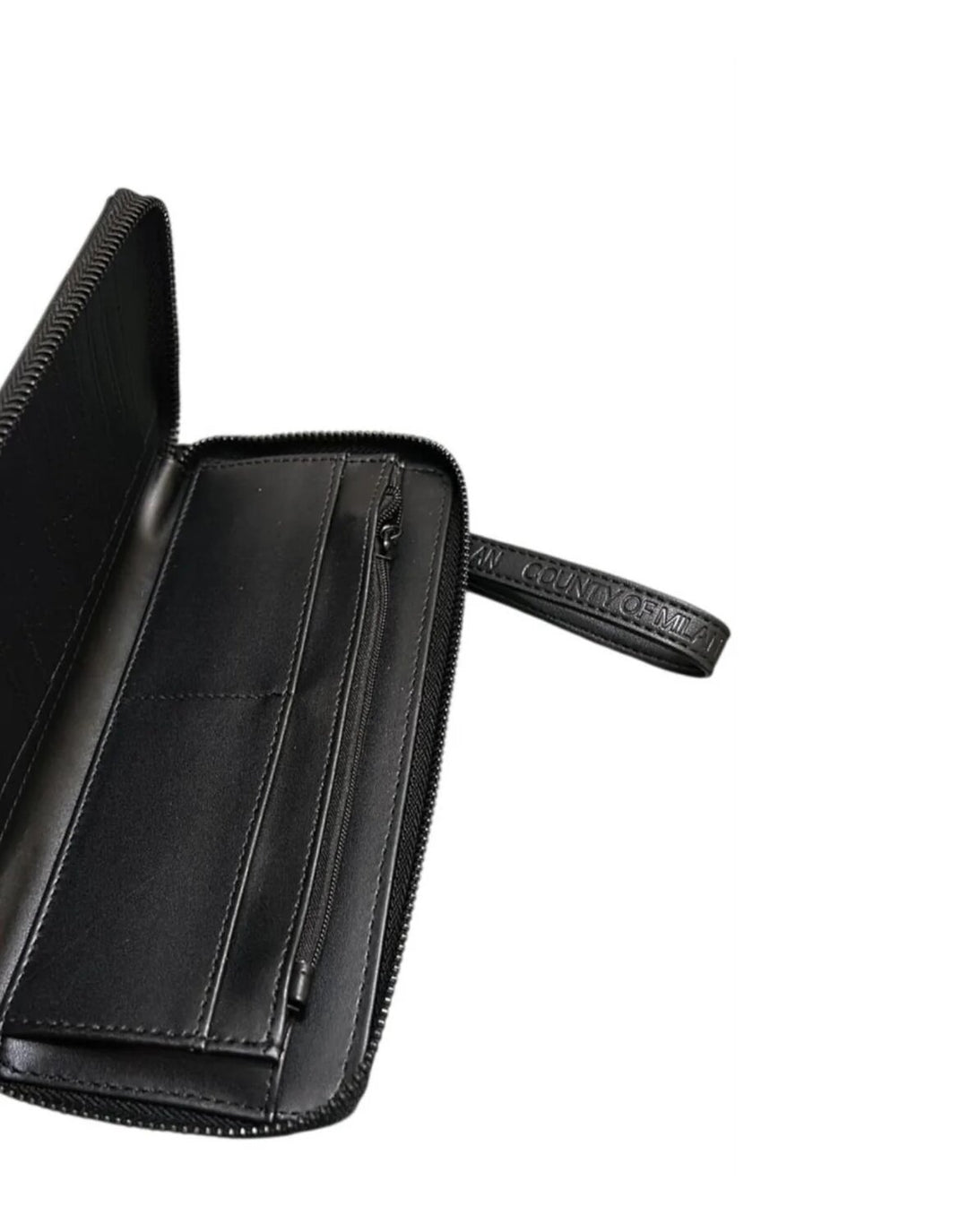 * Portafoglio con cerniera a tre lati.* Cinturino da polso con scritta logata.* Stampa a contrasto sul pannello frontale raffigurante ali di uccello.* Scomparto interno per carte e banconote.