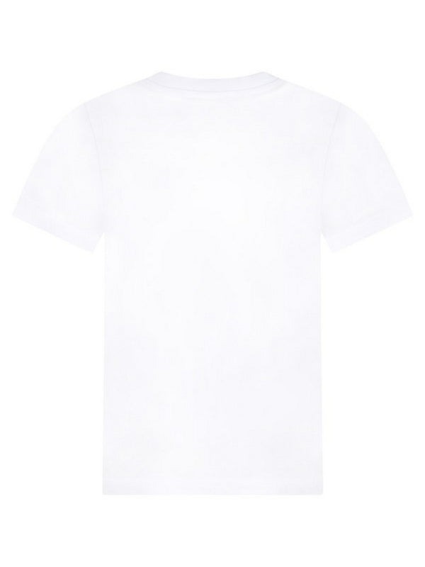 T-shirt DSQUARED in cotone. Tinta unita bianca con scritta sul fronte a contrasto di colore. Collo a giro e maniche corte.