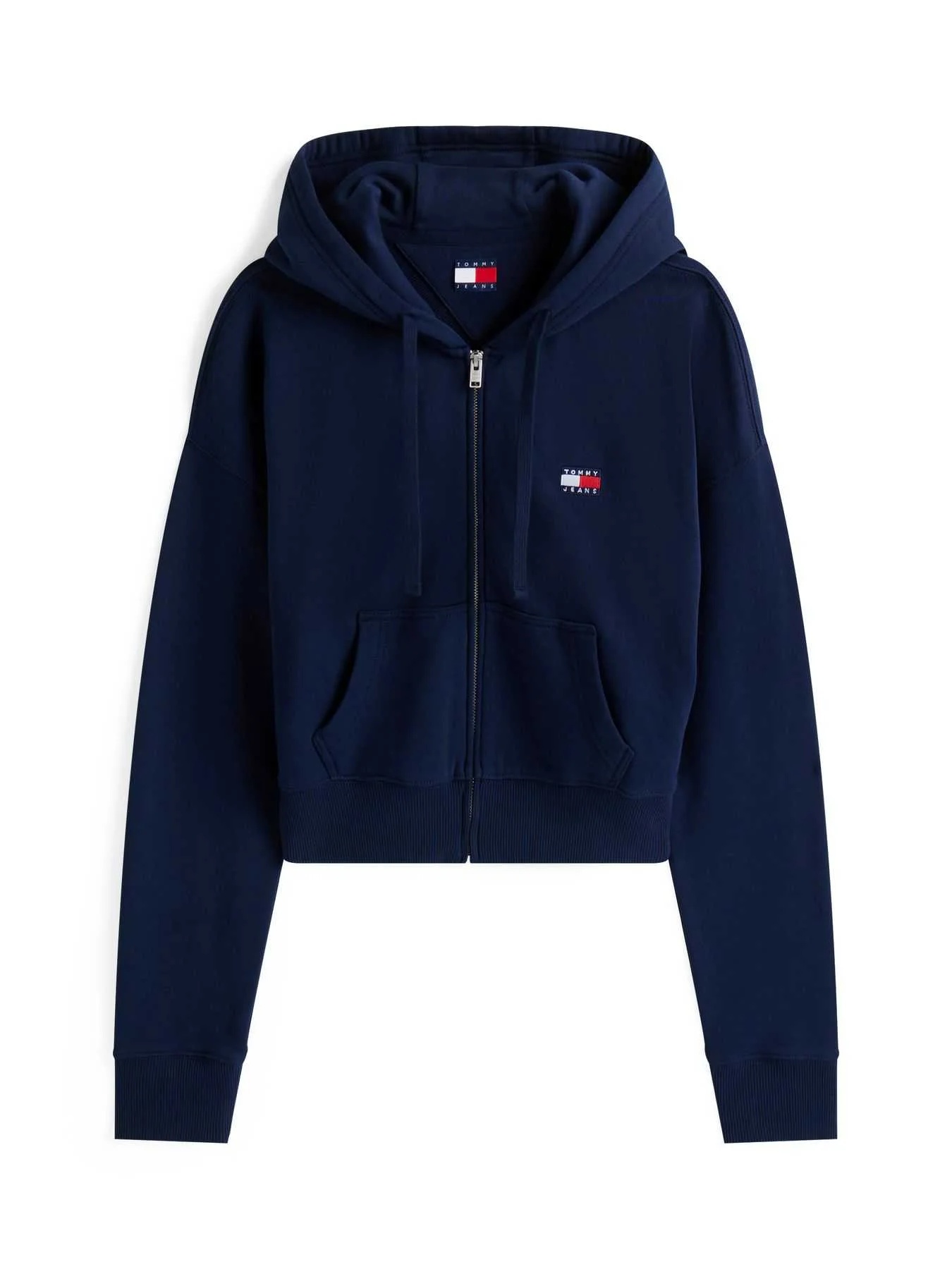 Felpa a maniche lunghe Cappuccio con coulisse e chiusura con zip Taglio corto in vita (cropped) Tasche frontali a marsupio Polsini e fondo a costine Logo ricamato sul petto