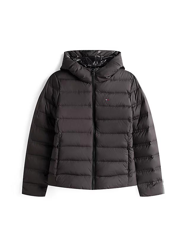 Il piumino con cappuccio, realizzato in tessuto idrorepellente e imbottito in piuma, è la scelta ideale in qualsiasi condizione climatica.