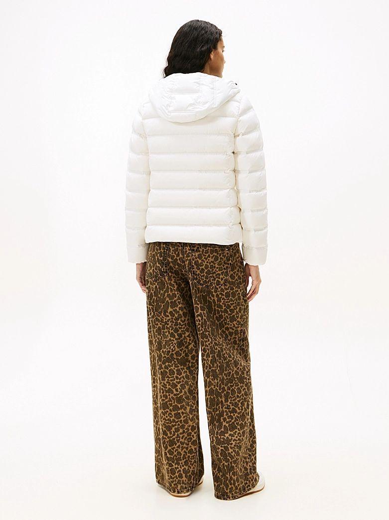 Il piumino con cappuccio, realizzato in tessuto idrorepellente e imbottito in piuma, è la scelta ideale in qualsiasi condizione climatica.