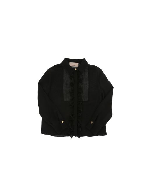 Camicia a manica lunga, tinta unita, con colletto, plastron ricamato, logo tono su tono e bottone oro logato. Classy e fashion.
