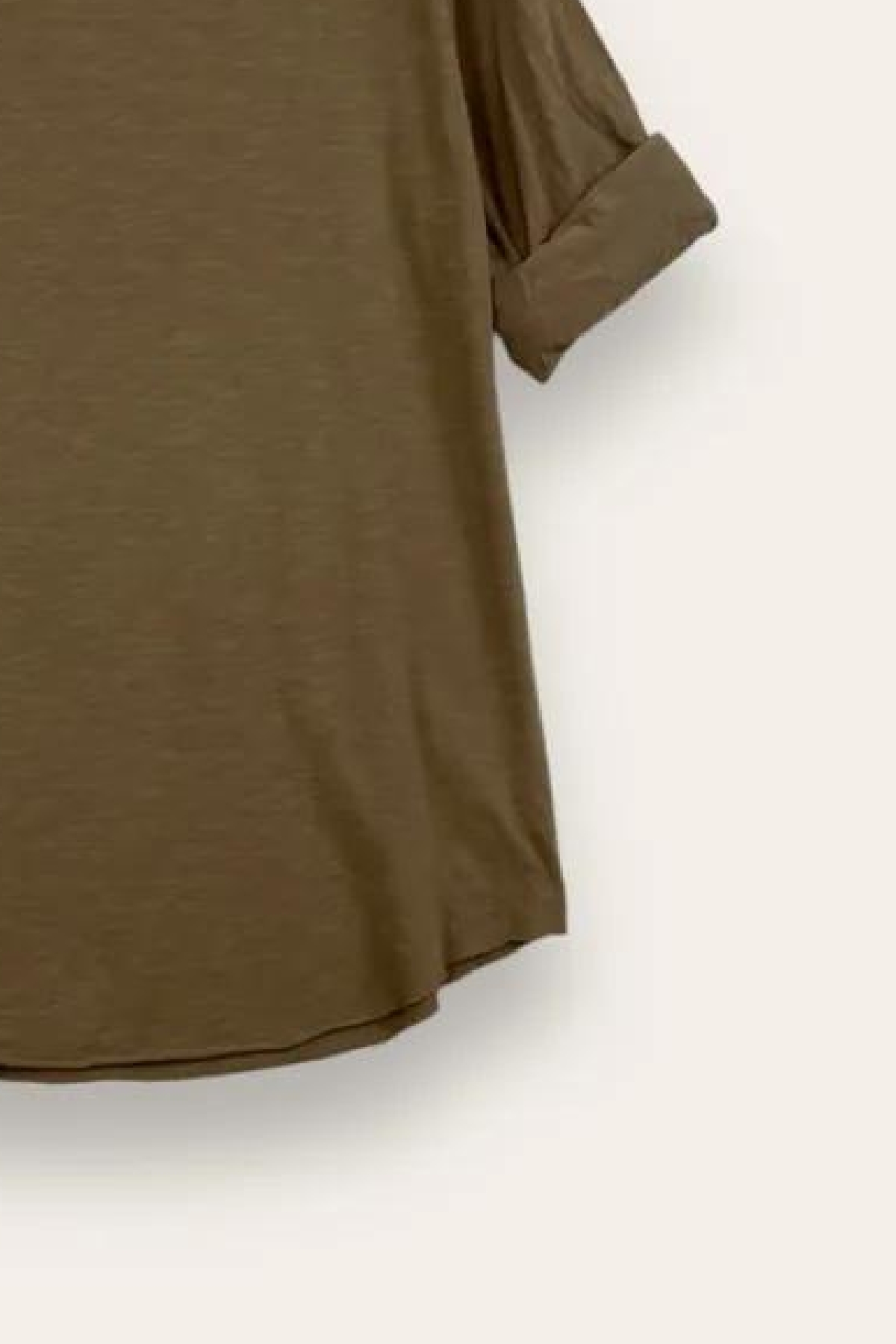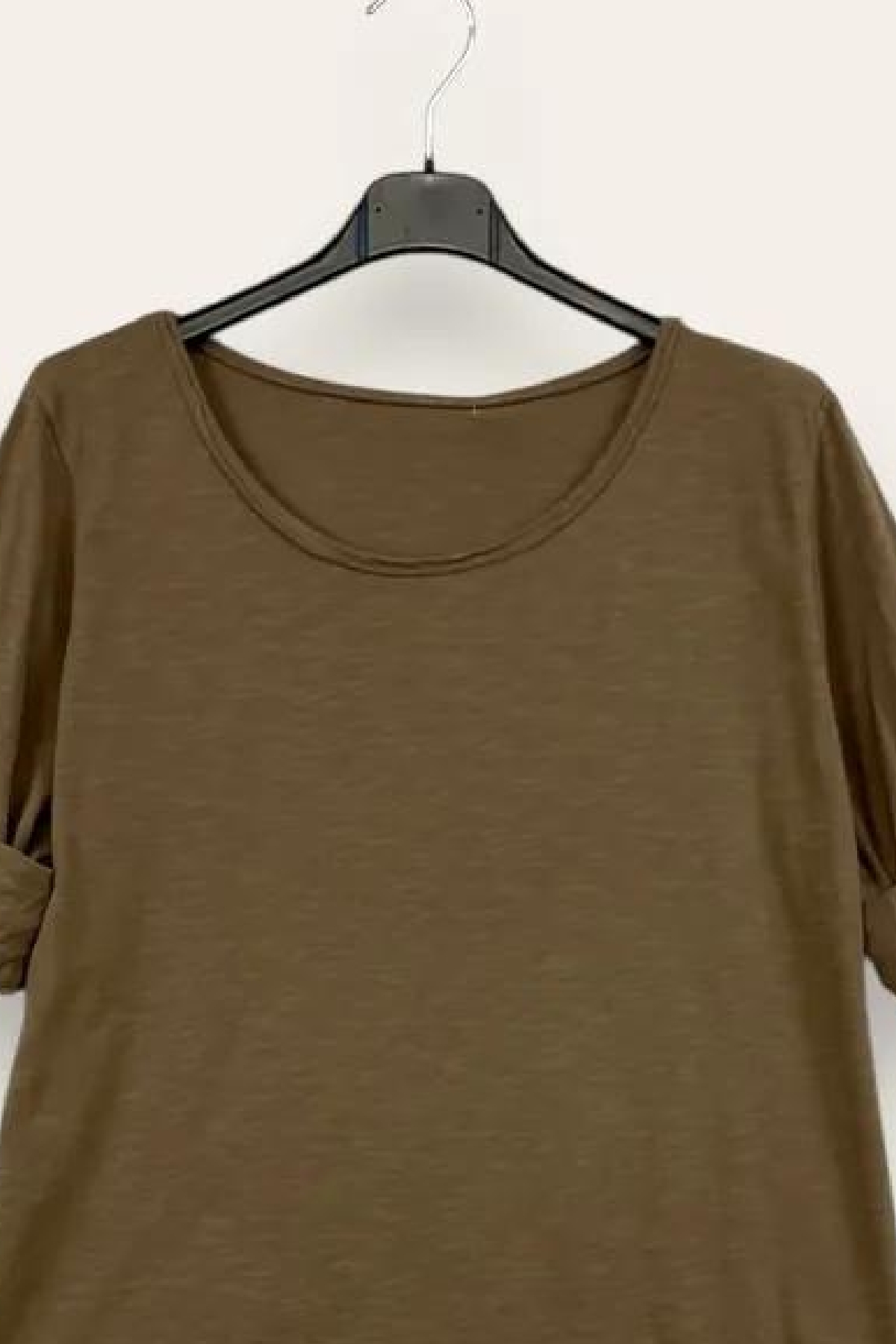 * T-shirt a maniche corte* Scollo rotondo* Maniche con risvolto* Fondo leggermente arrotondato* Linea morbida e casual* Tessuto leggero e confortevole