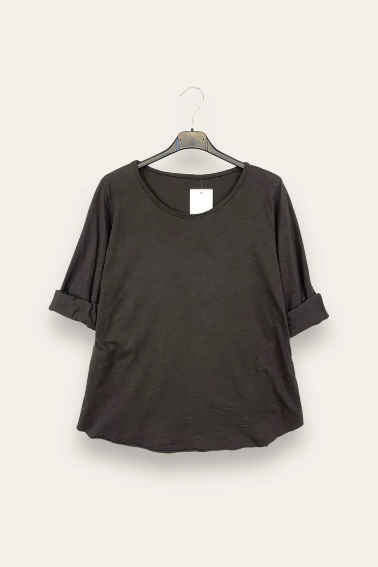 * T-shirt a maniche corte* Scollo rotondo* Maniche con risvolto* Fondo leggermente arrotondato* Linea morbida e casual* Tessuto leggero e confortevole