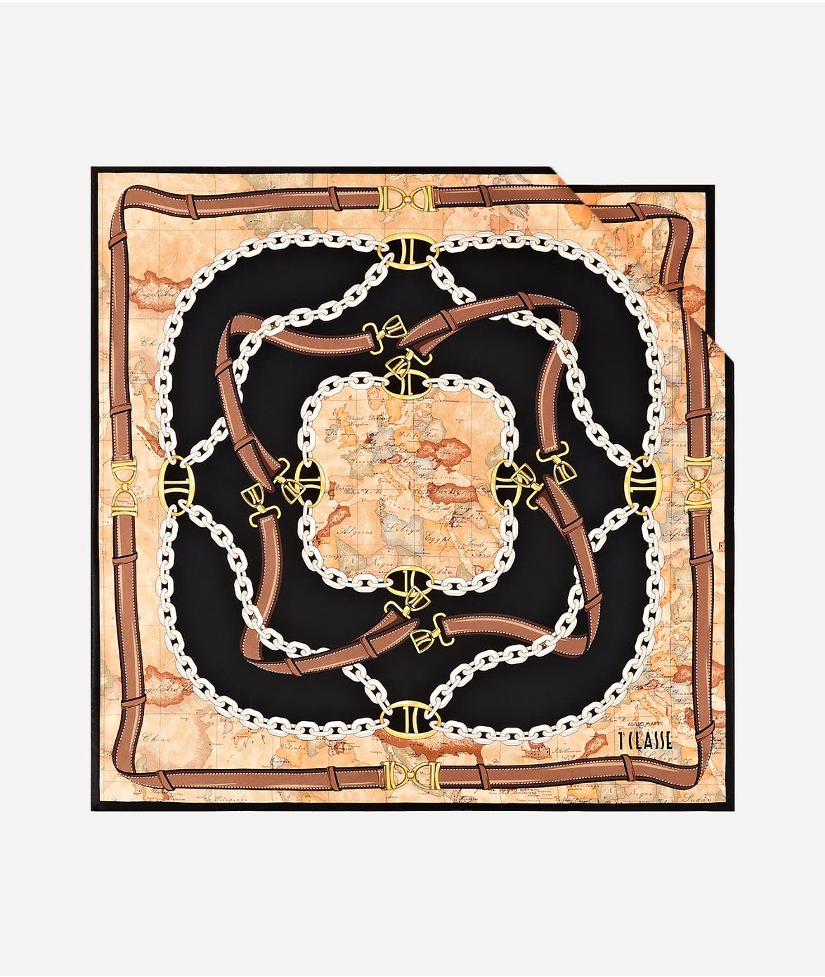 La nuova stampa ispirata al mondo della selleria rende elegante e sofisticato questo foulard in seta. Disponibile in tonalità autunnali raffinate e di tendenza, è perfetto per elevare con un gesto gli outfit basic e per impreziosire le borse di Collezione.
