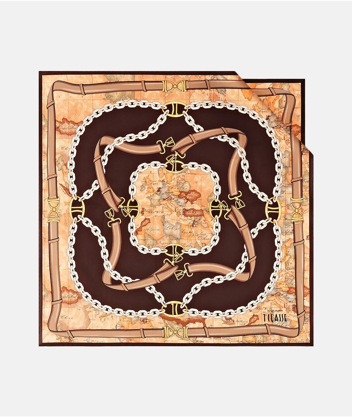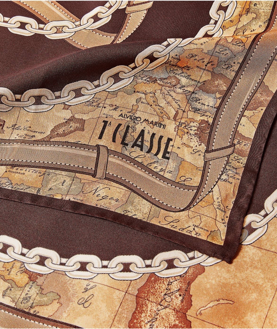 La nuova stampa ispirata al mondo della selleria rende elegante e sofisticato questo foulard in seta. Disponibile in tonalità autunnali raffinate e di tendenza, è perfetto per elevare con un gesto gli outfit basic e per impreziosire le borse di Collezione.