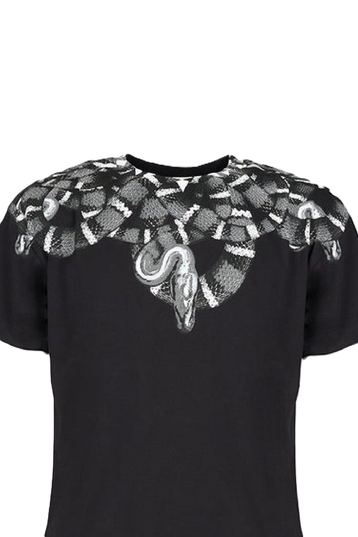 T-shirt girocollo manica corta tessuto in cotone stampa sul capo con coplori a contrasto vestibilità regolare
