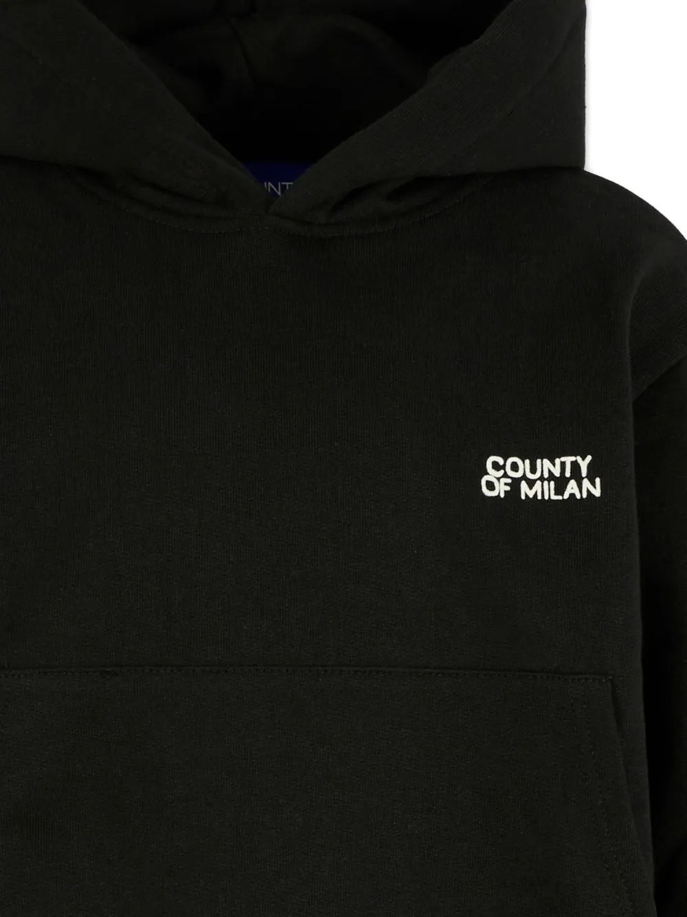 * Felpa con cappuccio* Chiusura frontale assente* Tasche a marsupio* Presenza del logo "COUNTY OF MILAN" sul petto* Maniche lunghe con polsini a costine* Cappuccio regolabile con cordino