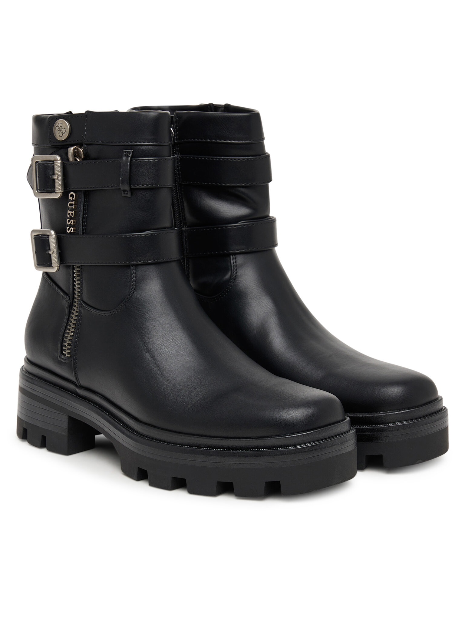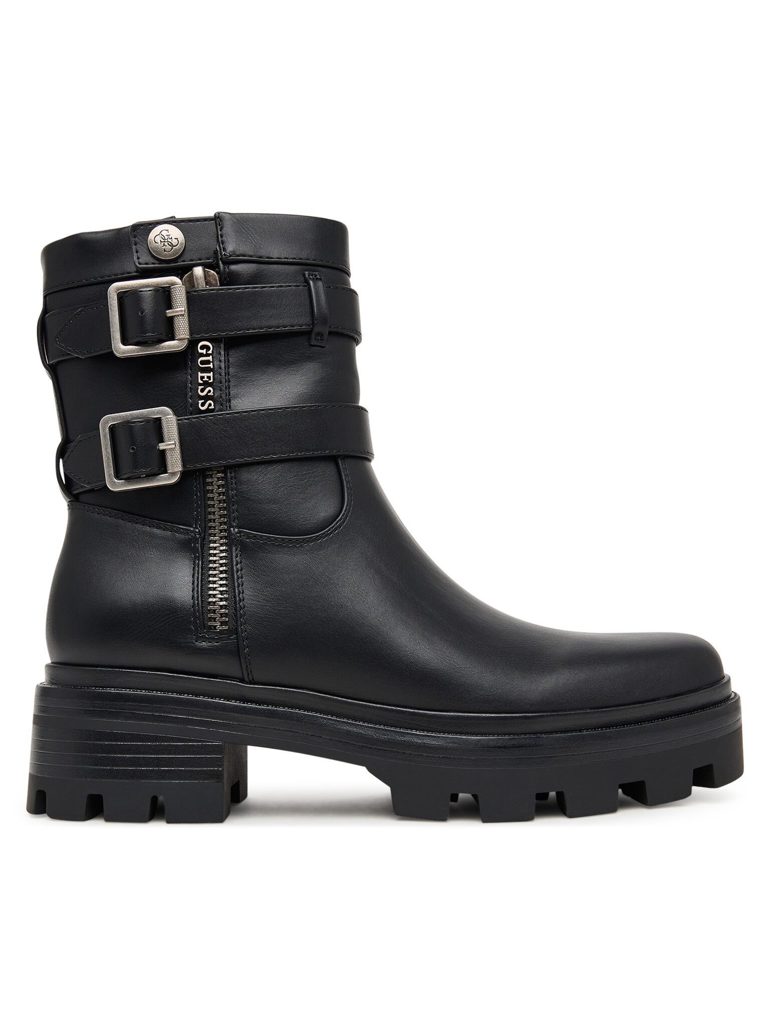 * Stivaletto con suola carrarmato.* Chiusura laterale con zip.* Fibbie decorative sulla fascia laterale.* Logo impresso lateralmente.* Modello con gambale alto.* Struttura in materiale liscio.