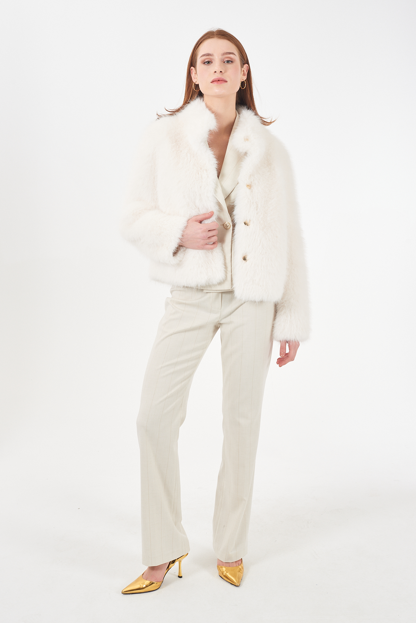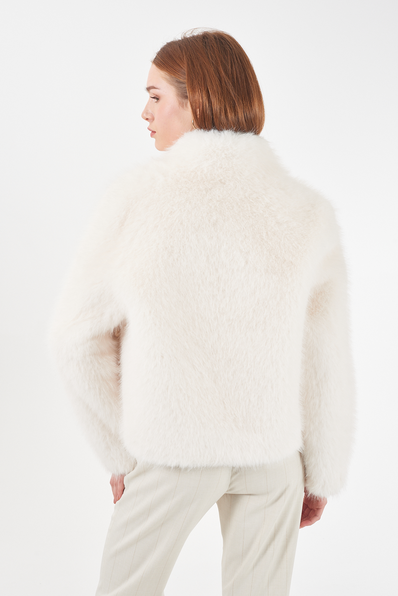 * Giacca in finta pelliccia.* Colletto alto.* Maniche lunghe.* Chiusura frontale.