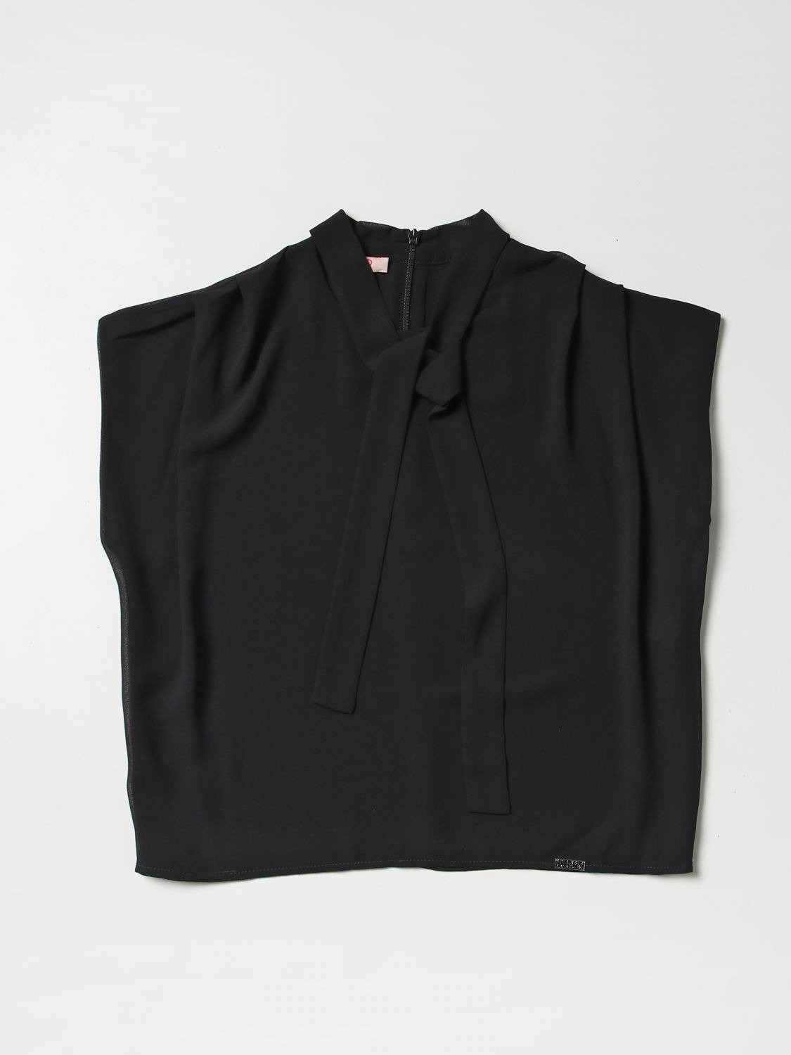Top in crêpeTaglio girocollo con fiocco sul davantiManiche ad alettaLogo in metallo al fondoChiusura con zip sul retro