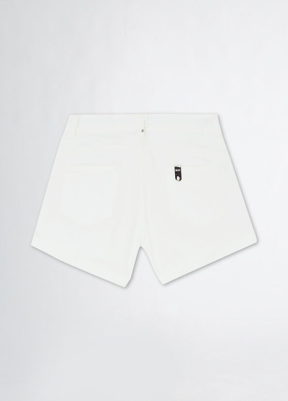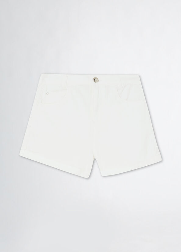 Short in gabardina di cotone stretchVita altaModello cinque tascheLogo in metallo sul retroRisvolto al fondoChiusura con bottone e zip nascosta