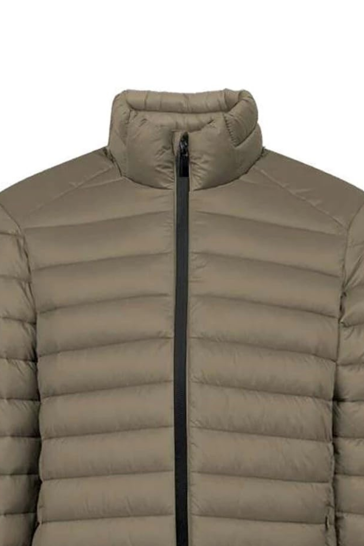 * Giacca imbottita* Chiusura frontale con zip* Colletto alto* Struttura orizzontale a fasce* Presenza del logo sul braccio sinistro* Tasche laterali con zip