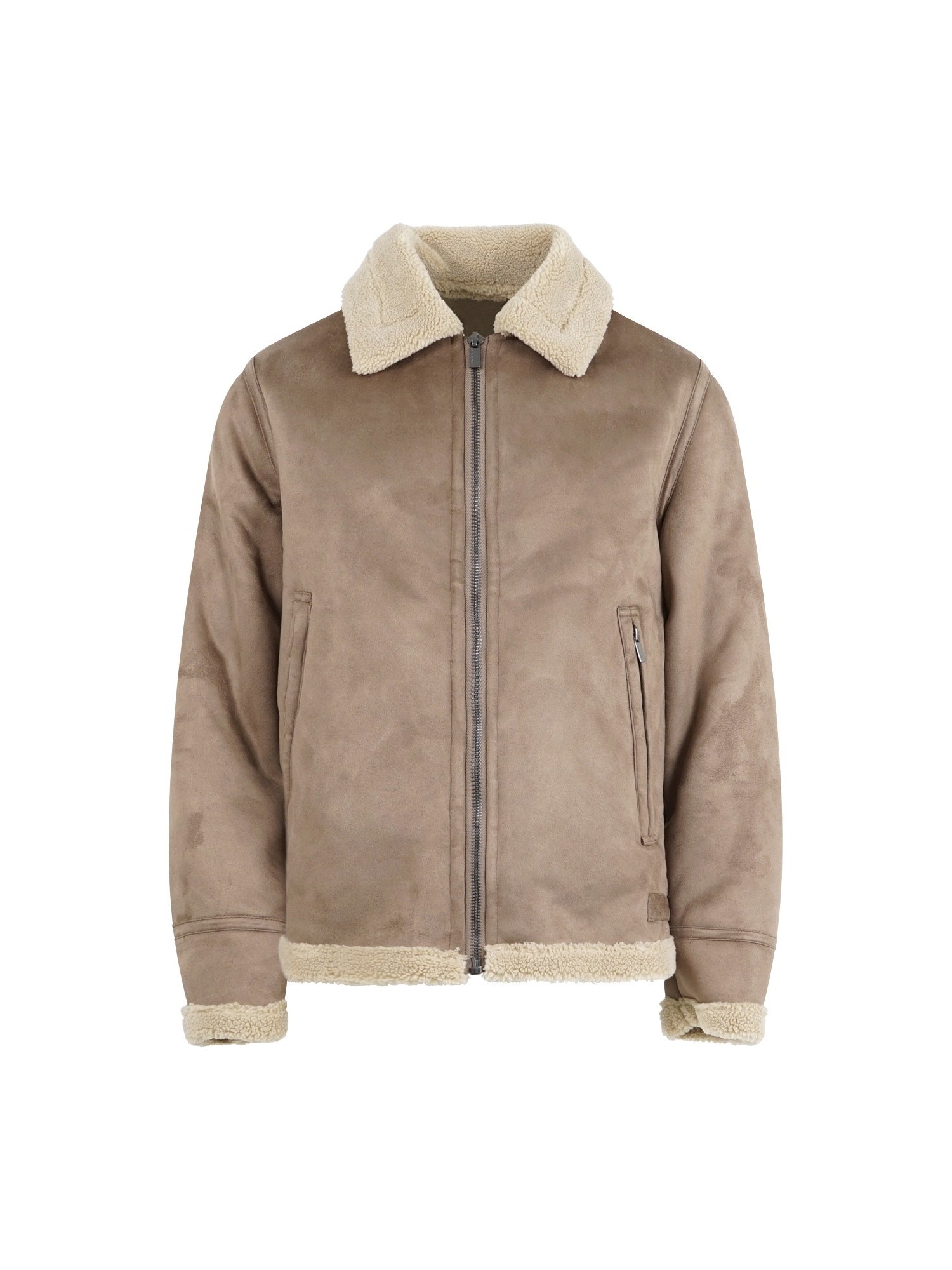 Collo in pecora biancaManica lungaChiusura integrale con zipTinta unitaEffetto montoneDue tasche lateraliInterno effetto pelliccia pecora
