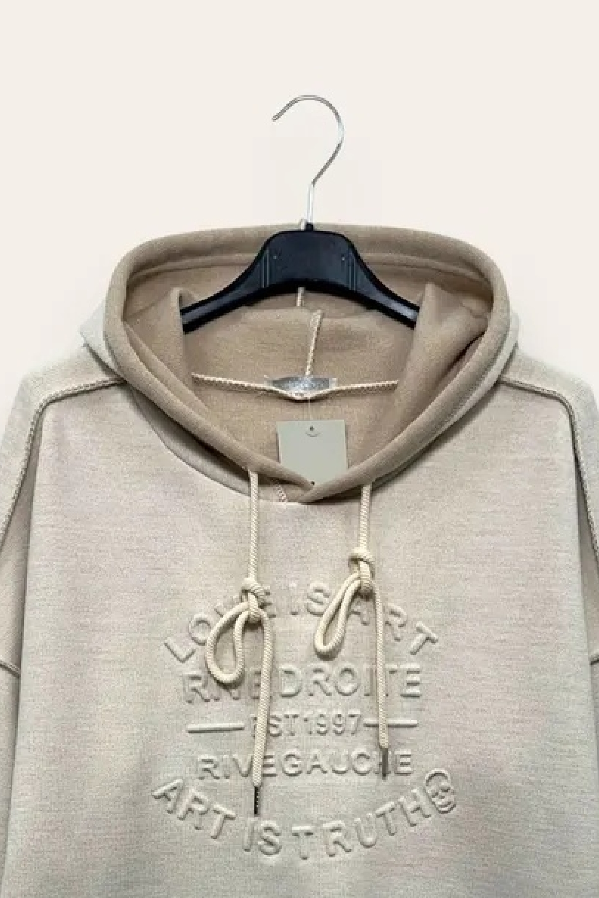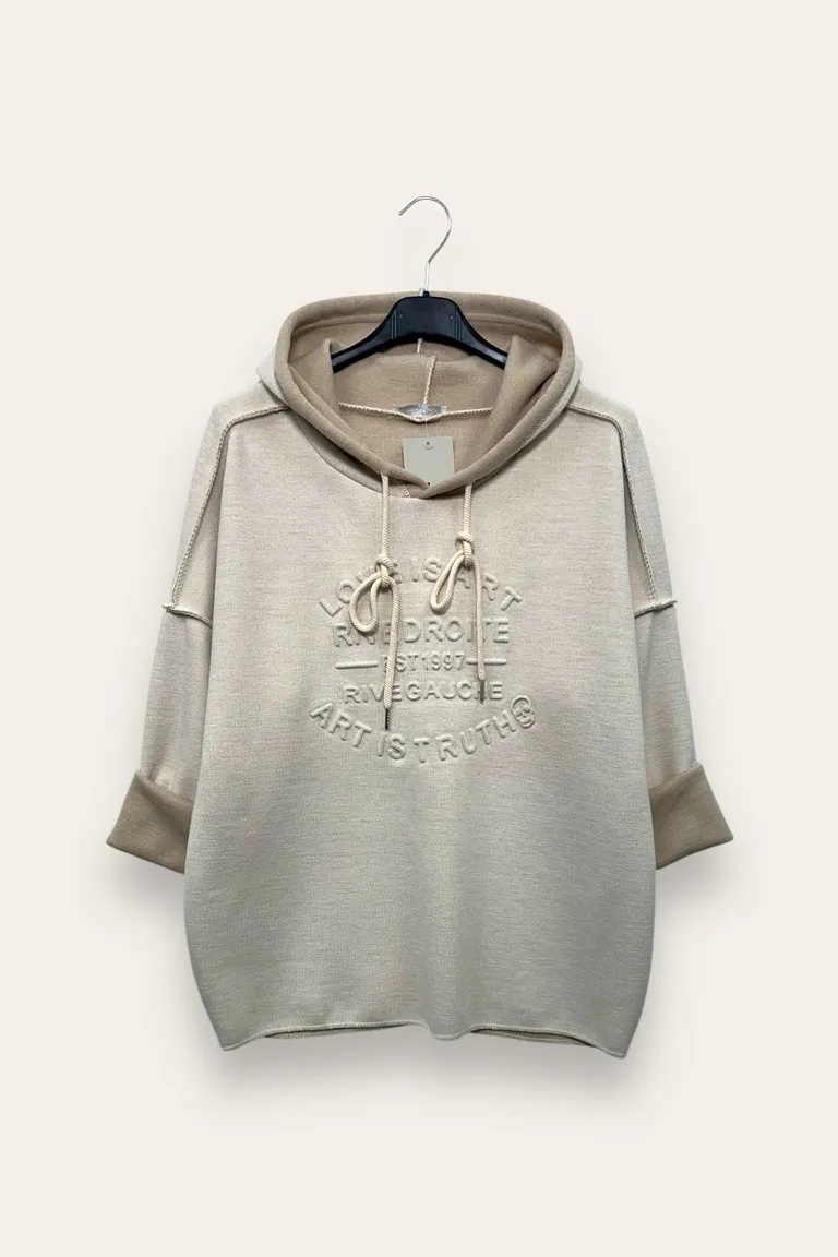 Felpa over in maglia scritta in rilievo e cappuccio