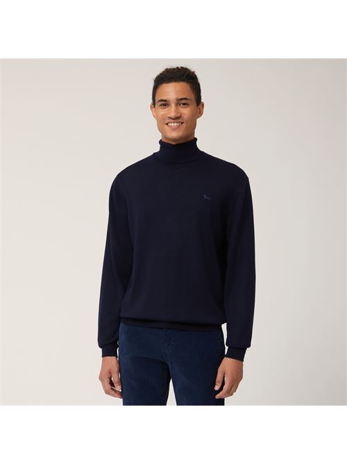 Questo dolcevita da uomo di Harmont & Blaine diventerà un vero must have nel tuo guardaroba invernale grazie alla sua calda e accogliente composizione in lana merino e alle sue linee pulite e sobrie. Questo modello dalla vestibilità regolare è perfetto per chi non vuole rinunciare alla comodità. È completato da collo, polsini e orlo a coste per un comfort aggiuntivo. Sul petto è presente il bassotto Blaine, il simbolo must have del brand.