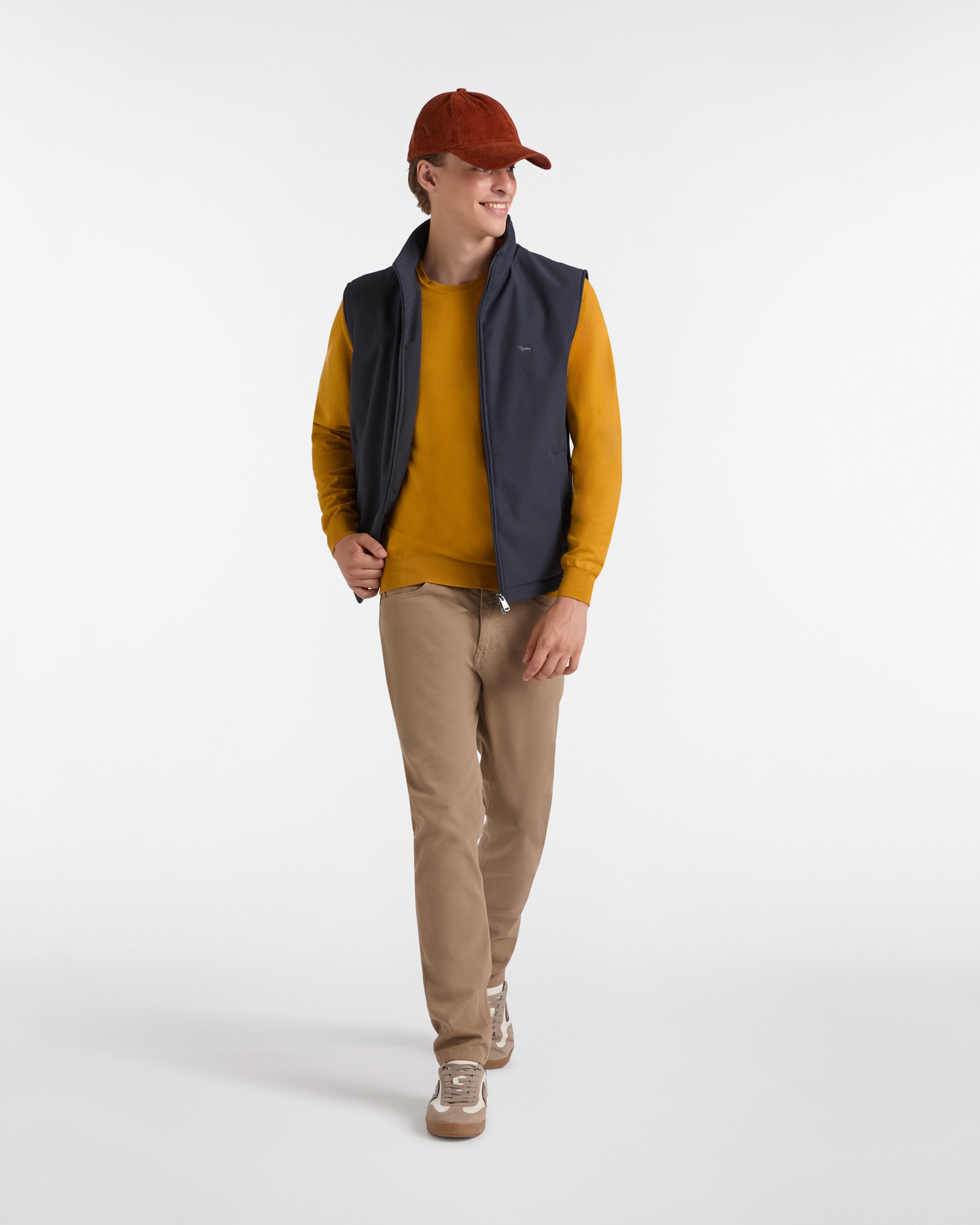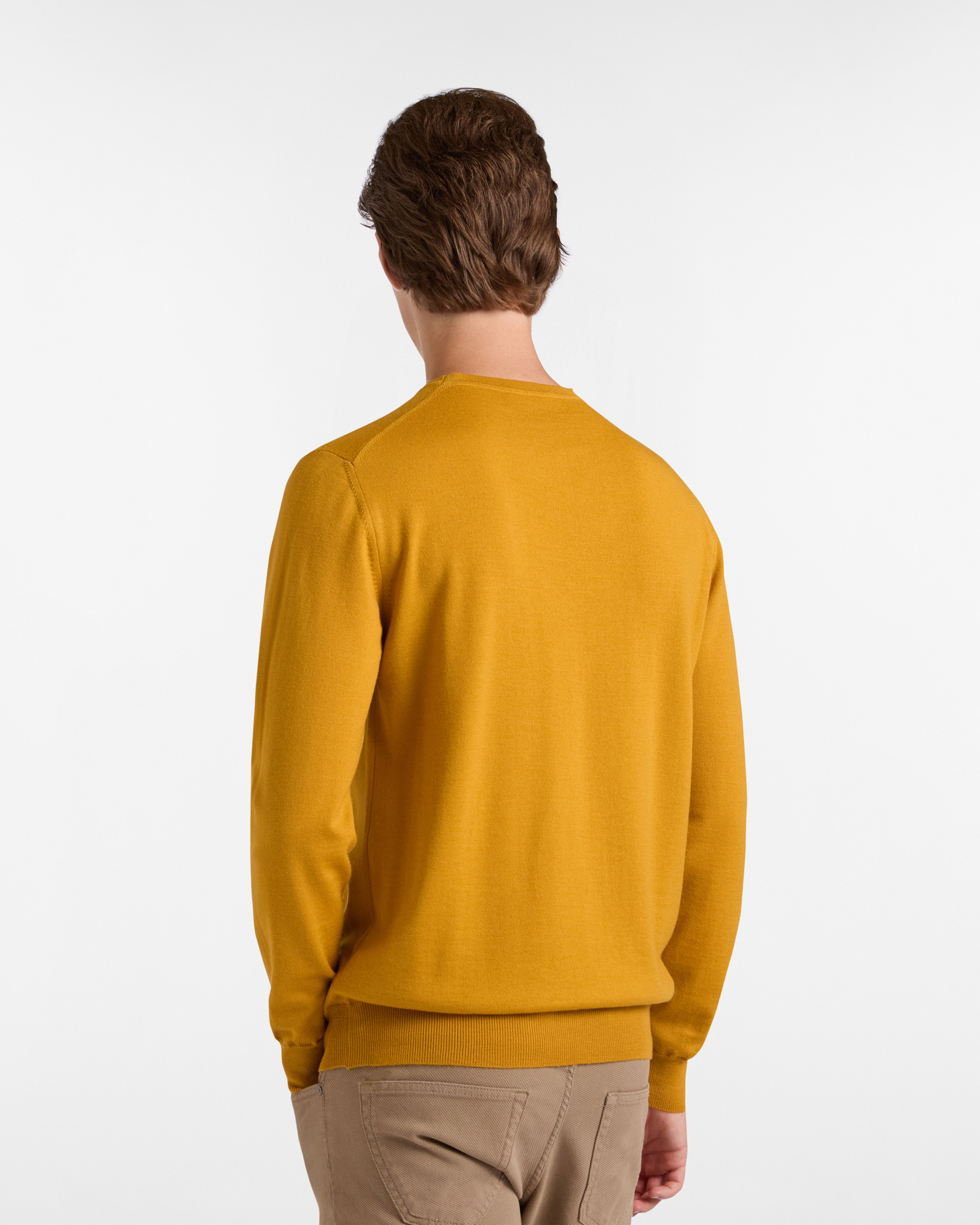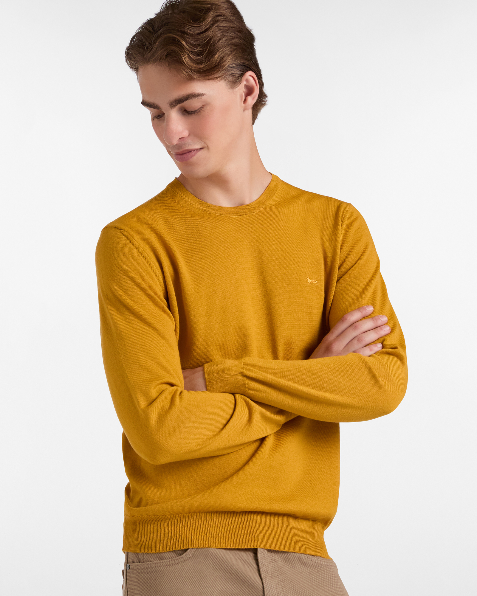Questo pullover girocollo da uomo in pregiata lana merino dal peso leggero vi accompagnerà durante i primi freddi della mezza stagione, grazie alla sua composizione calda e confortevole. Il modello si presenta in una vestibilità regular, l'ideale per non costringere i movimenti e per accompagnarti durante tutta la giornata, mentre sul petto spunta l'immancabile bassotto ricamato in tono, firma distintiva di Harmont & Blaine.