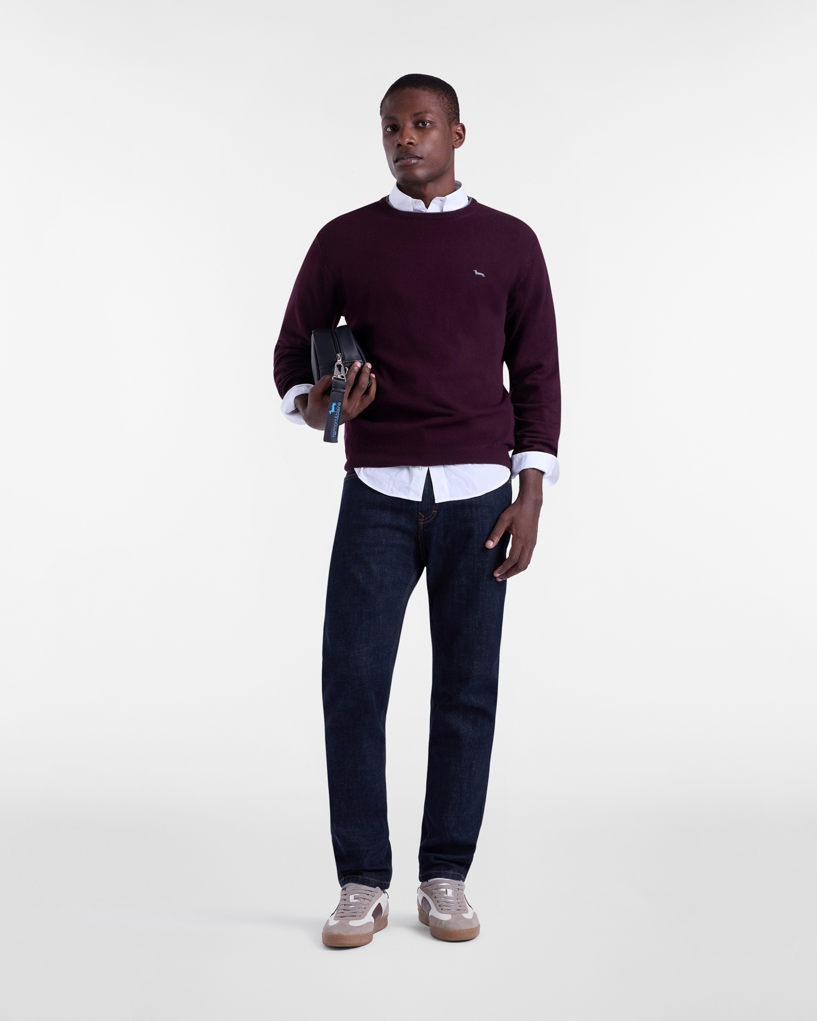Con il pullover girocollo da uomo in caldo e leggero misto lana e cashmere avrete a disposizione un capo passe-partout da indossare durante tutta la giornata, dall'ufficio al tempo libero. Alla linea essenziale e confortevole, completata da collo, polsi e fondo capo lavorati a costine, Harmont & Blaine aggiunge un tocco di brio, dato dal bordo a contrasto sul collo e sui polsi, ripreso dal ricamo dell'iconico bassotto sul petto. Il capo è proposto in una vestibilità regular, ideale per non costringere i movimenti.