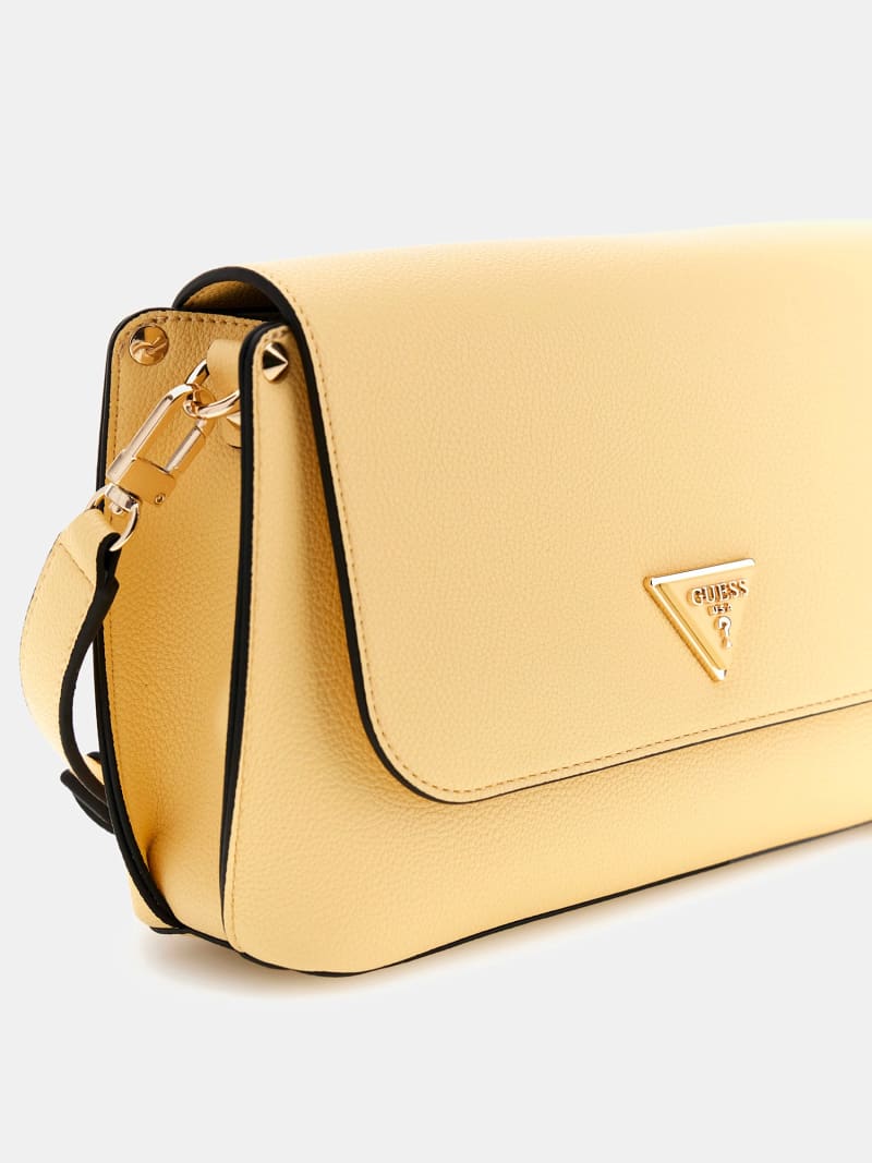 Esterno in simil pelle.Chiusura con patta.Metalleria color oro pallido.Triangolo logo in metallo frontale.