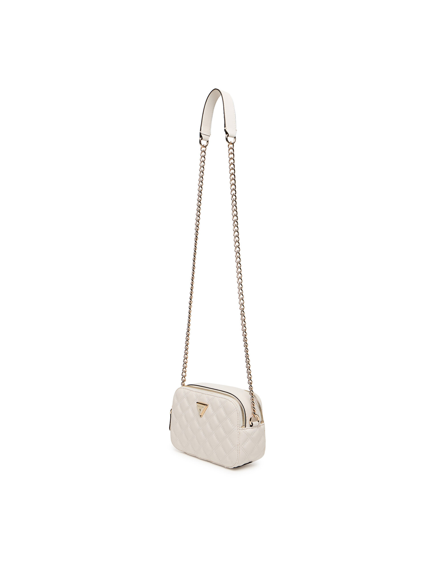 Lussuoso esterno in similpelle trapuntata con eleganti dettagli in oro pallido. Presenta un'elegante tracolla a catena e in similpelle per una versatilità d'uso. I pratici scomparti con doppia cerniera offrono spazio sicuro, mantenendo inalterata la silhouette elegante della borsa fotografica. Il perfetto connubio tra stile e funzionalità per ogni occasione.