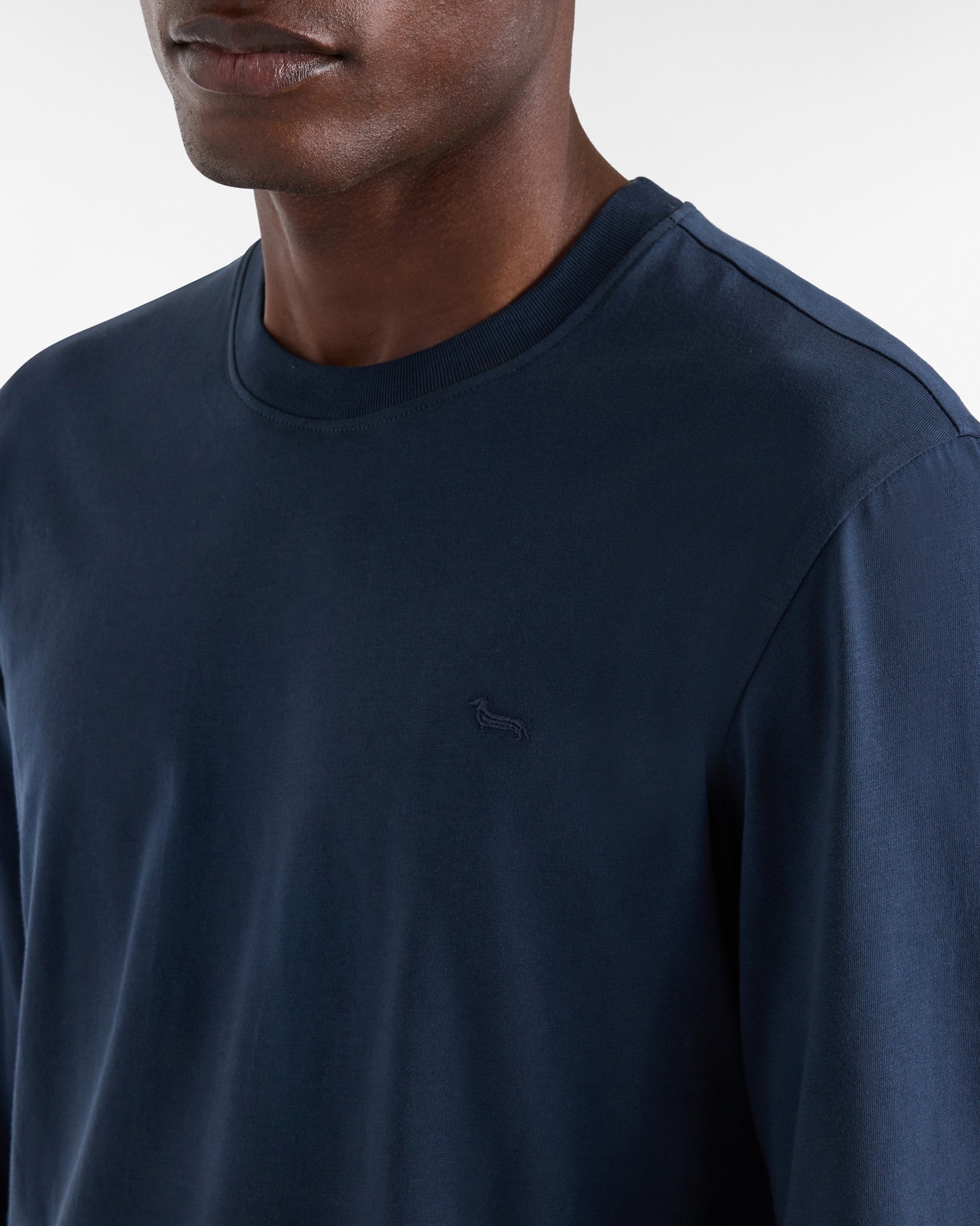 Realizzata in jersey di pregiato cotone Supima, questa T-shirt girocollo da uomo è la scelta ideale per completare un outfit casual, sia indossandola da sola sia portandola come parte di un look a strati, grazie alla sua incredibile versatilità. Il modello a maniche lunghe, presentato in una comoda vestibilità regular per assicurare massima libertà di movimento, è rifinito dall'iconico bassotto ricamato in tono sul petto, che conferisce al design il tocco di personalità tipico di Harmont & Blaine.