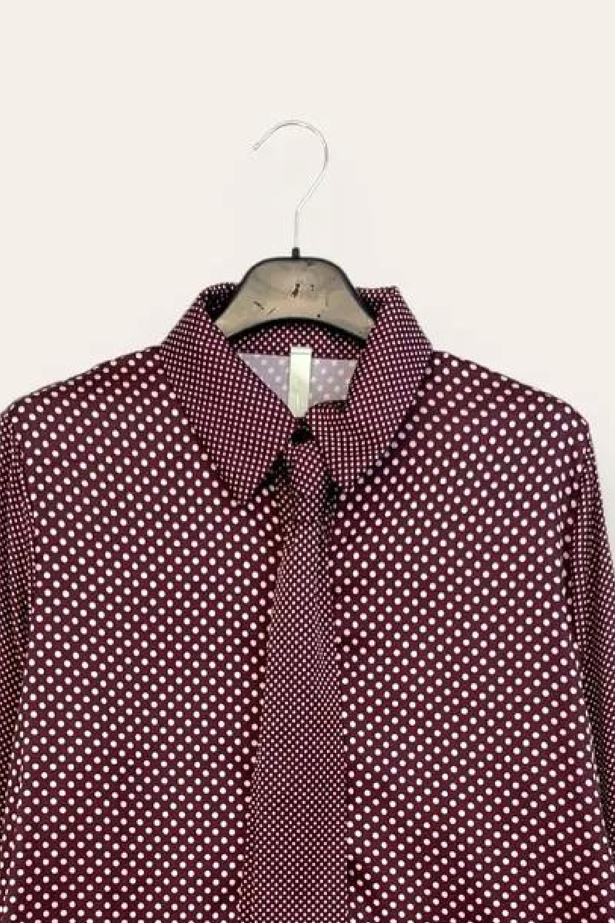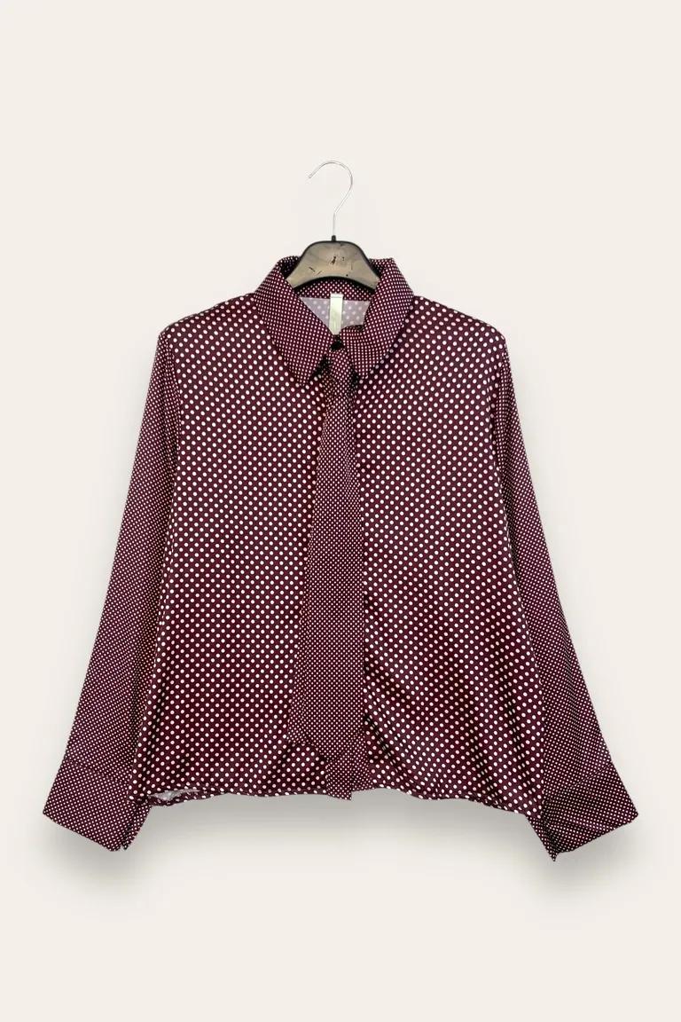 Camicia a pois con cravatta e profilo a contrasto con pois piccole