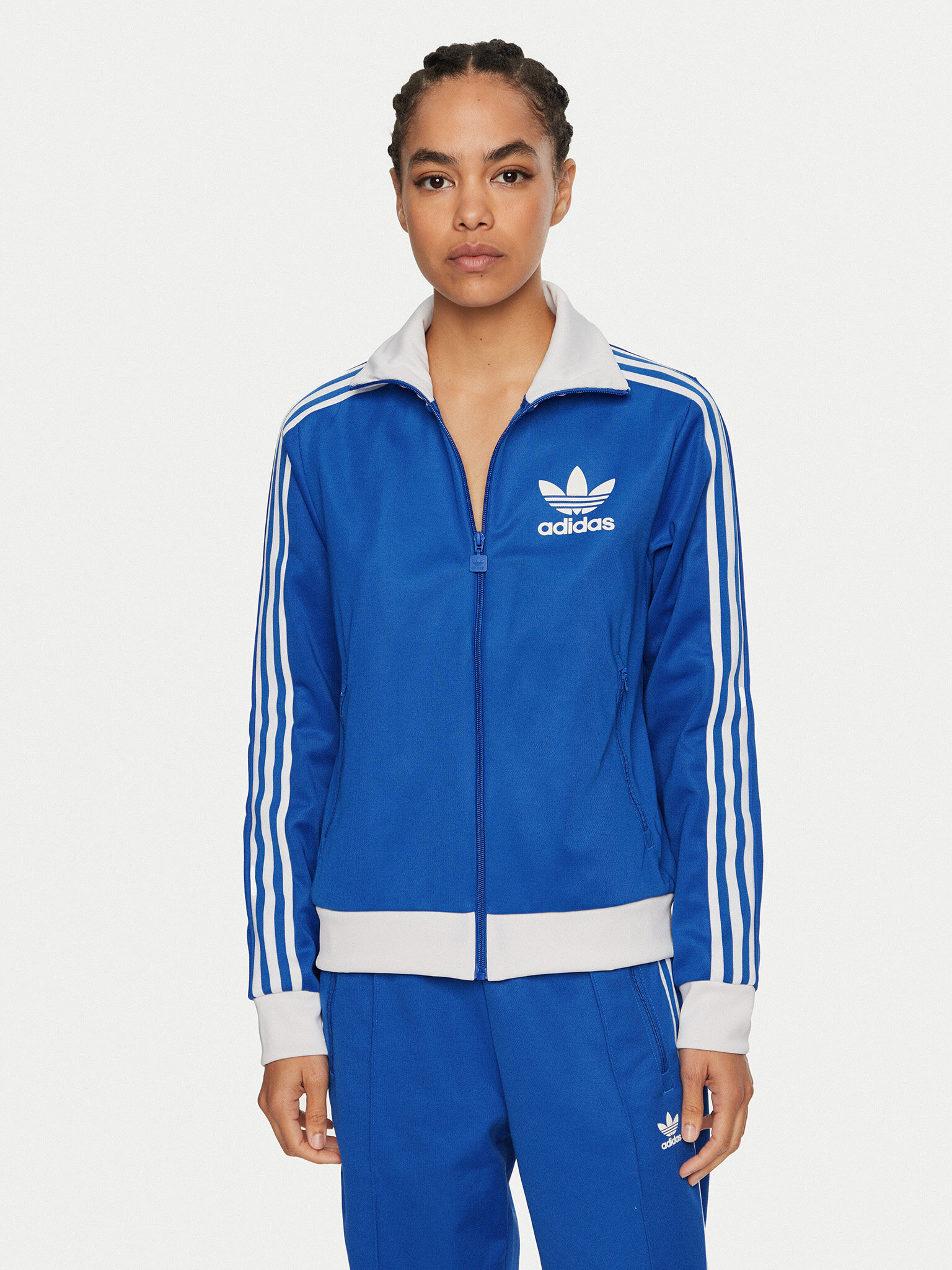Giacca da tuta con zip.Collo alto.Tre strisce sulle maniche.Logo Adidas sul petto.Nessuna tasca visibile.Vestibilità regolare.