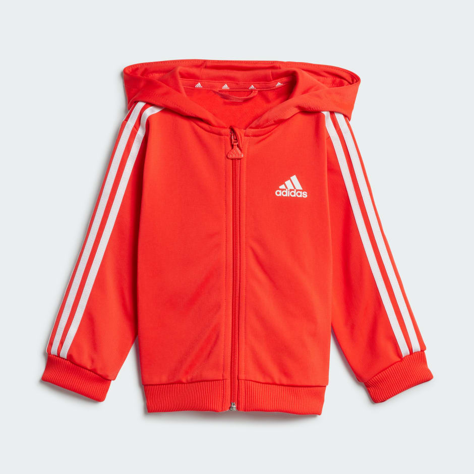 - Completo sportivo per bambini con felpa e pantaloni- Felpa con cappuccio e chiusura a zip- Tre strisce Adidas sulle maniche della felpa- Pantaloni con vita elasticizzata e logo Adidas- Logo Adidas presente sia sulla felpa che sui pantaloni