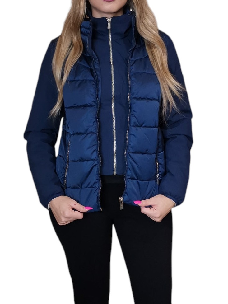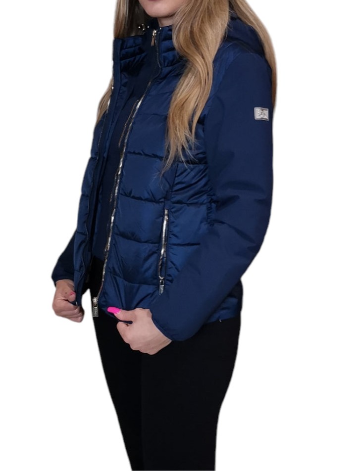 * Giubbotto con cappuccio e coulisse.* Chiusura a zip con tiretto logato.* Maniche lunghe con polsini elastici.* Due tasche laterali con zip.* Orlo dritto.