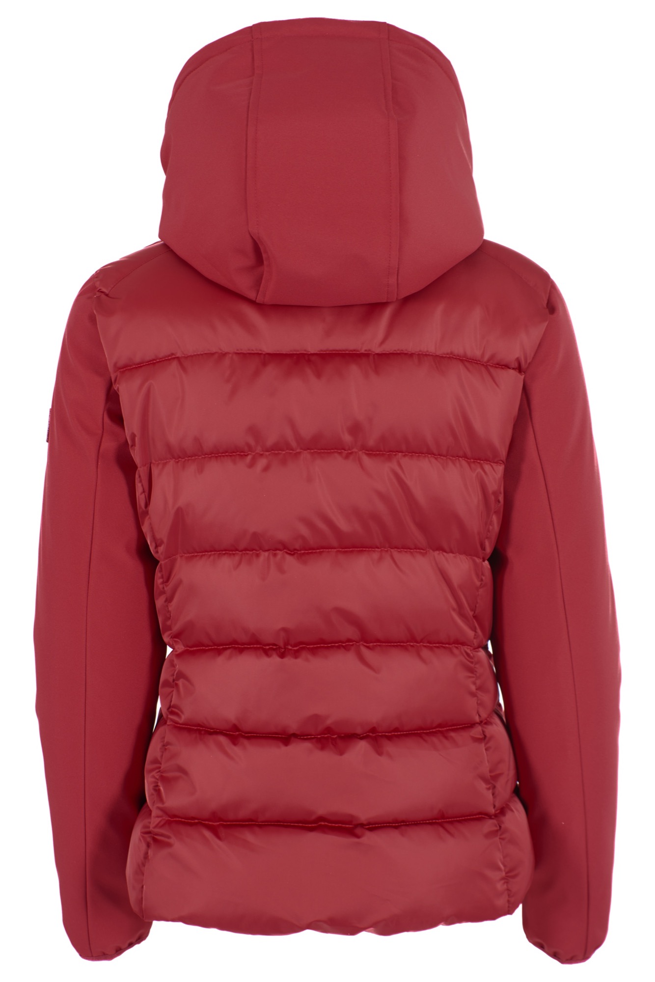 * Giubbotto con cappuccio e coulisse.* Chiusura a zip con tiretto logato.* Maniche lunghe con polsini elastici.* Due tasche laterali con zip.* Orlo dritto.