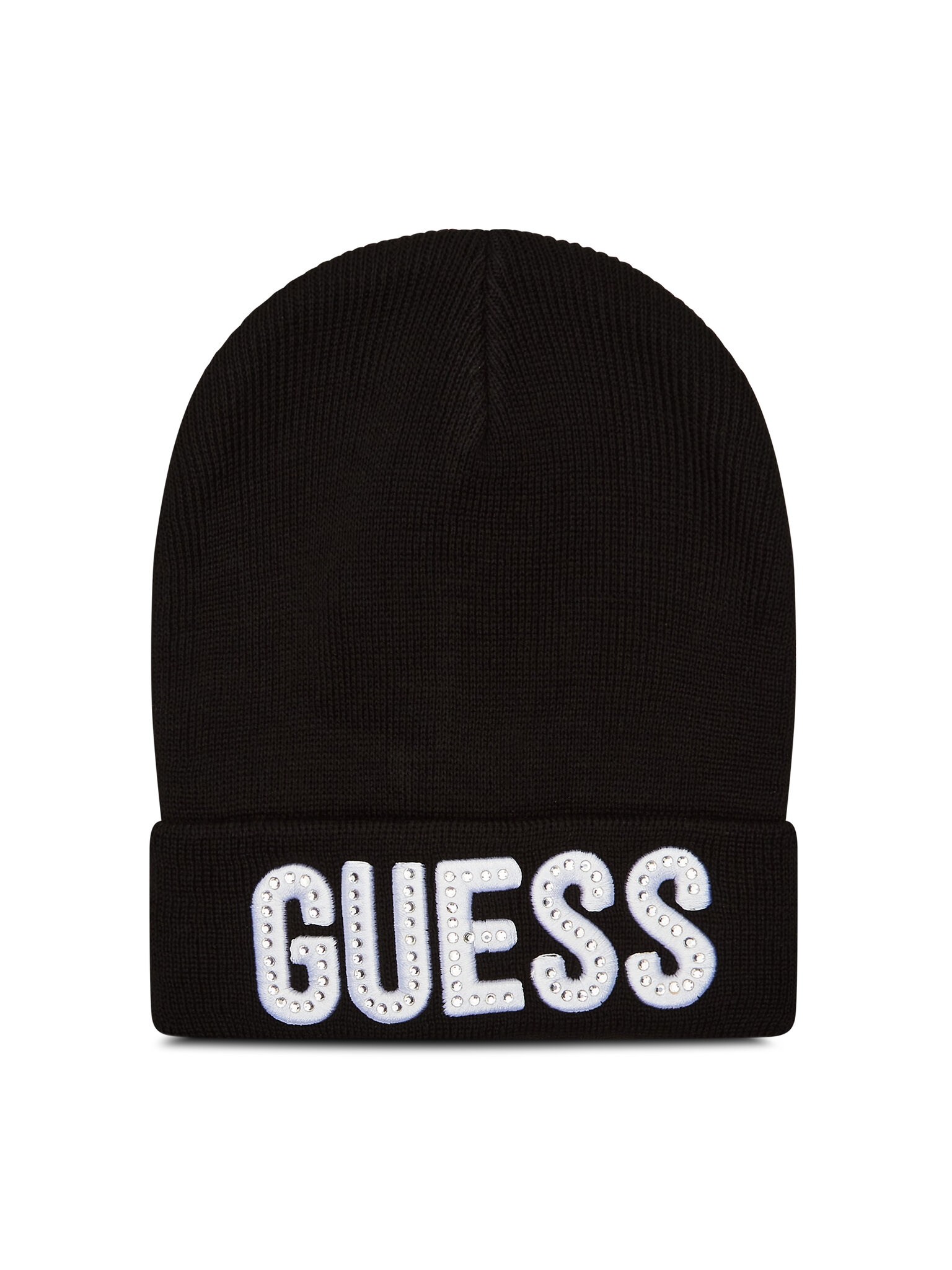 Berretto in maglia a coste.Modello con risvolto.Maxi logo frontale applicato sul risvolto.Scritta del logo impreziosita da applicazioni brillanti.Design classico e avvolgente.Tessuto morbido ed elasticizzato.
