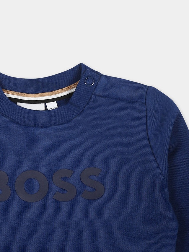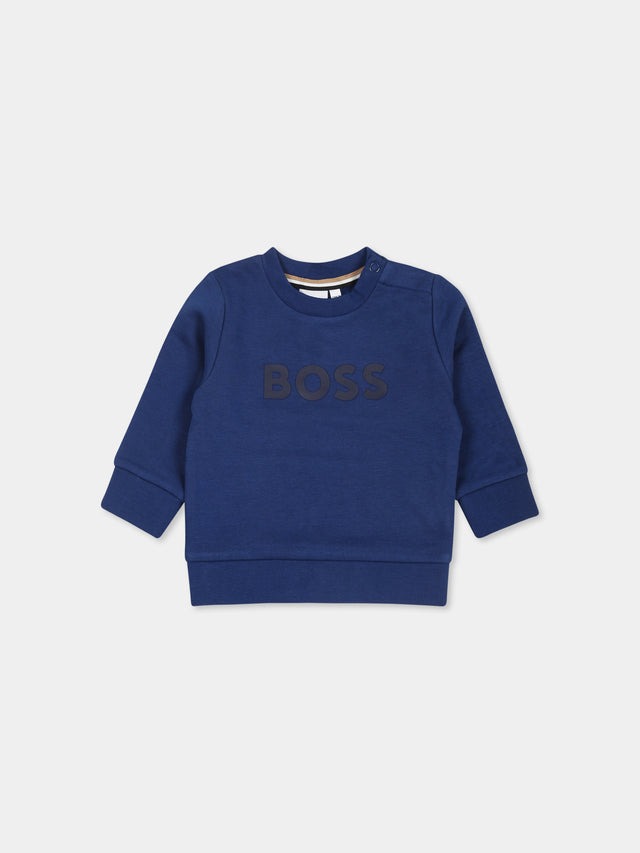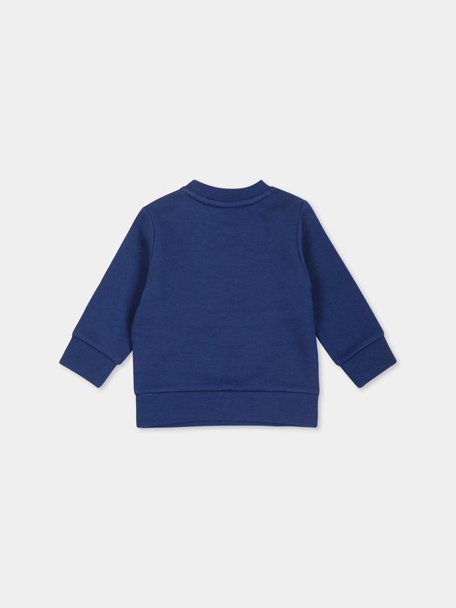 Felpa in misto cotone felpato, a maniche lunghe, con girocollo a costine, chiusura con bottoni automatici sulla spalla, polsini e orlo a costine. È decorata con stampa logo frontale.