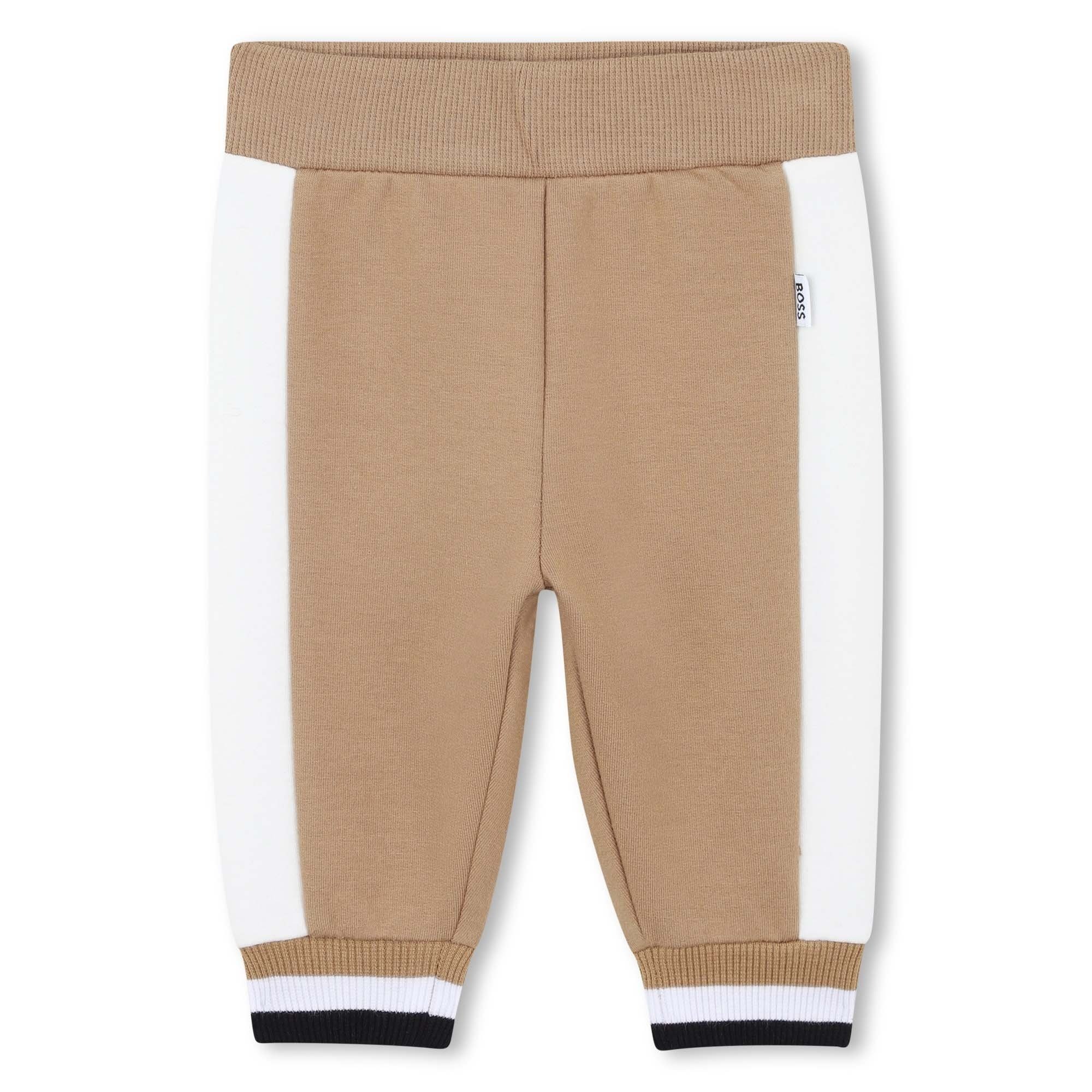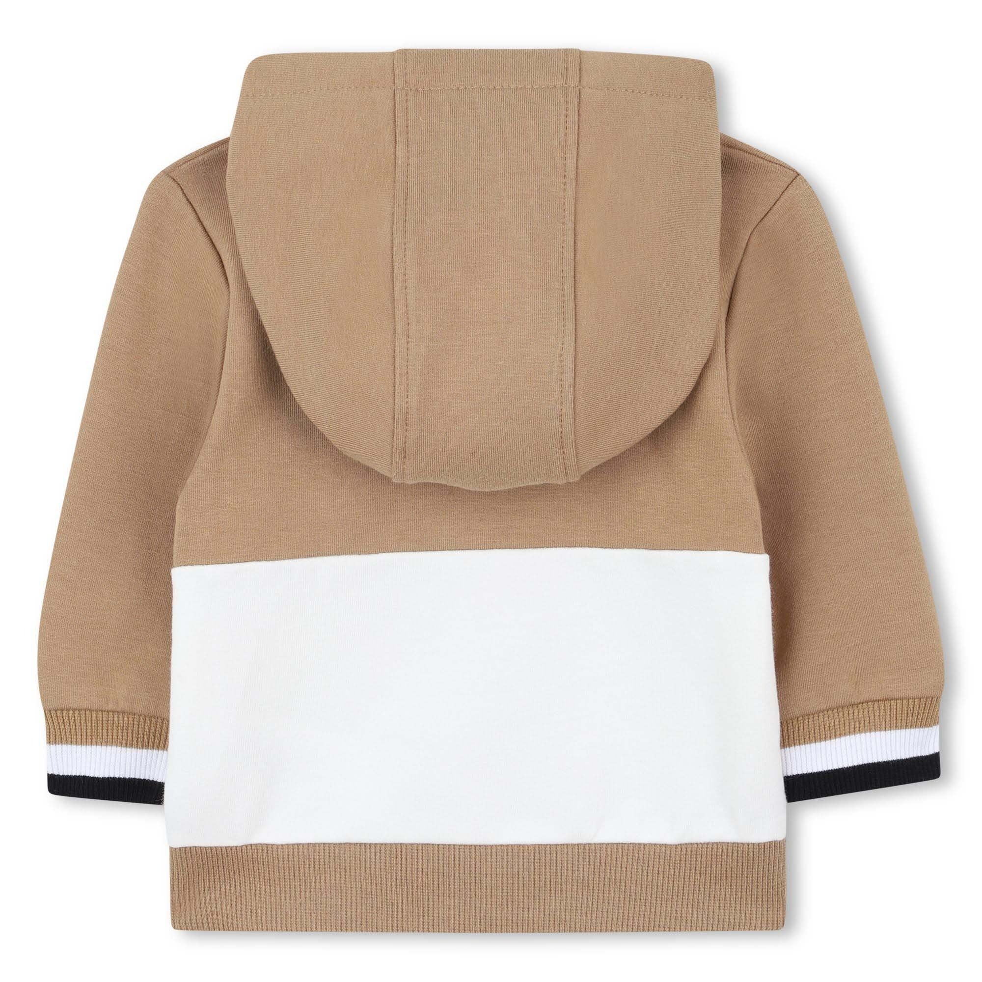 Questo completo BOSS include eleganti pantaloni della tuta, un cardigan e una camicia a maniche lunghe, perfetti per i ragazzi che apprezzano comfort e stile. I pantaloni della tuta sono marroni con una spessa striscia bianca lungo il lato per un look sportivo. Il cardigan abbinato ha una chiusura a zip, un cappuccio ed è marrone con dettagli bianchi sull'orlo e una tasca bianca sul petto con il logo BOSS. La camicia a maniche lunghe combina marrone, bianco e nero con la scritta BOSS nera in grassetto per un look moderno. Realizzato con materiali morbidi e traspiranti per un comfort ottimale. Il completo è ideale per l'uso quotidiano, sia a casa che in viaggio. La combinazione di colori rende l'outfit facile da abbinare ad altri capi. Disponibile in varie taglie per i ragazzi che apprezzano stile e comfort.