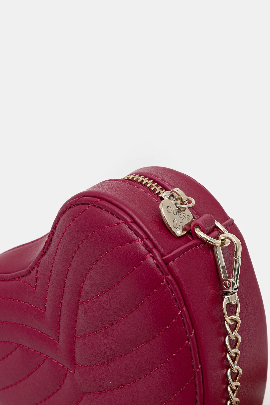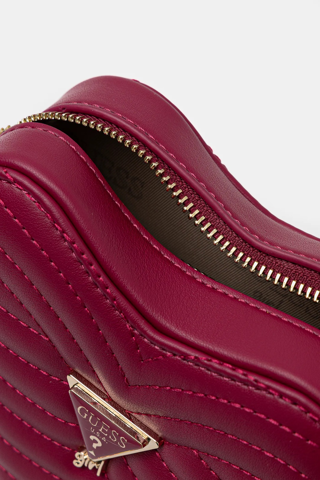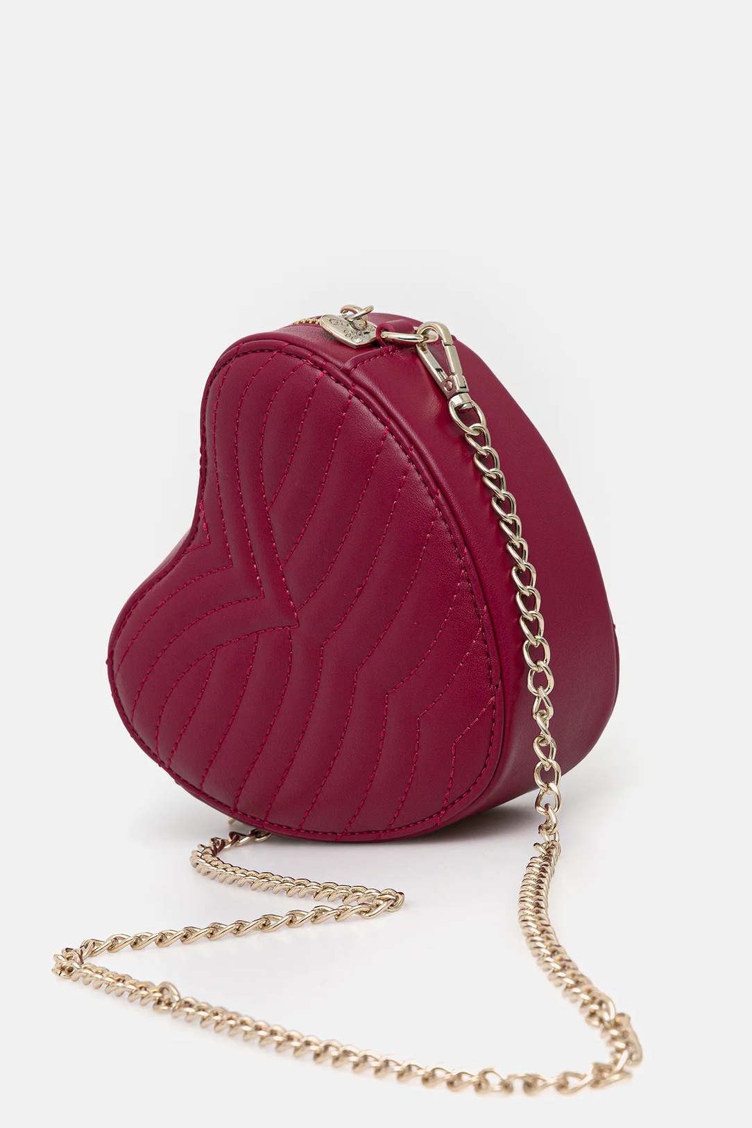 • Borsa a cuore in similpelle.• Trapuntata.• Logo triangolo metallico.• Metalleria color oro chiaro.• Chiusura con cerniera.
