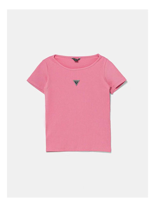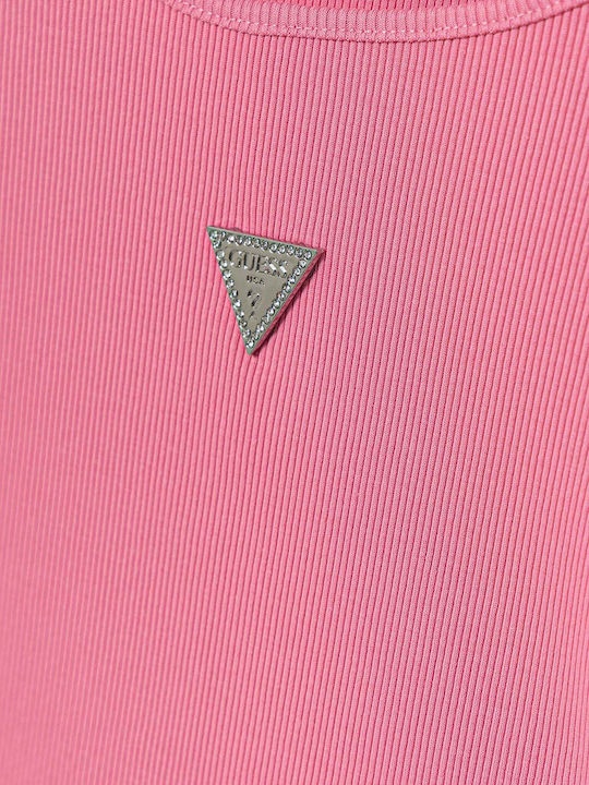 T-shirt a maniche corteTessuto a costineScollo rotondoLogo a triangolo frontale con strassApertura con bottone sulla spallaVestibilità aderente
