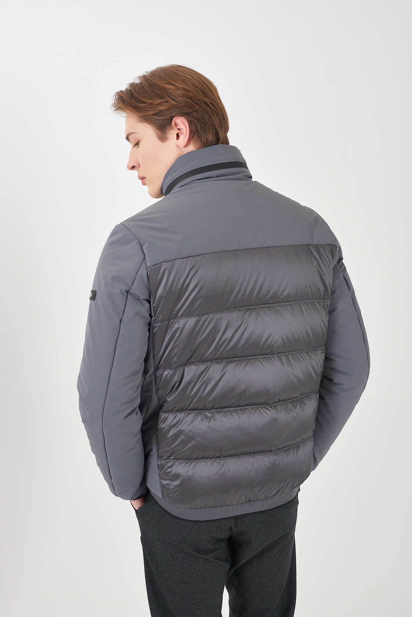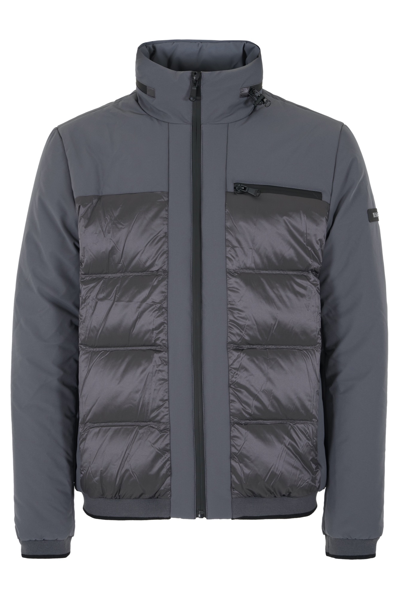 * Giubbotto con colletto alto e cappuccio interno.* Chiusura a zip.* Tasche laterali a zip e taschino a zip sul petto.* Maniche lunghe con polsini a costine.* Orlo a costine.* Patch logata sulla manica.