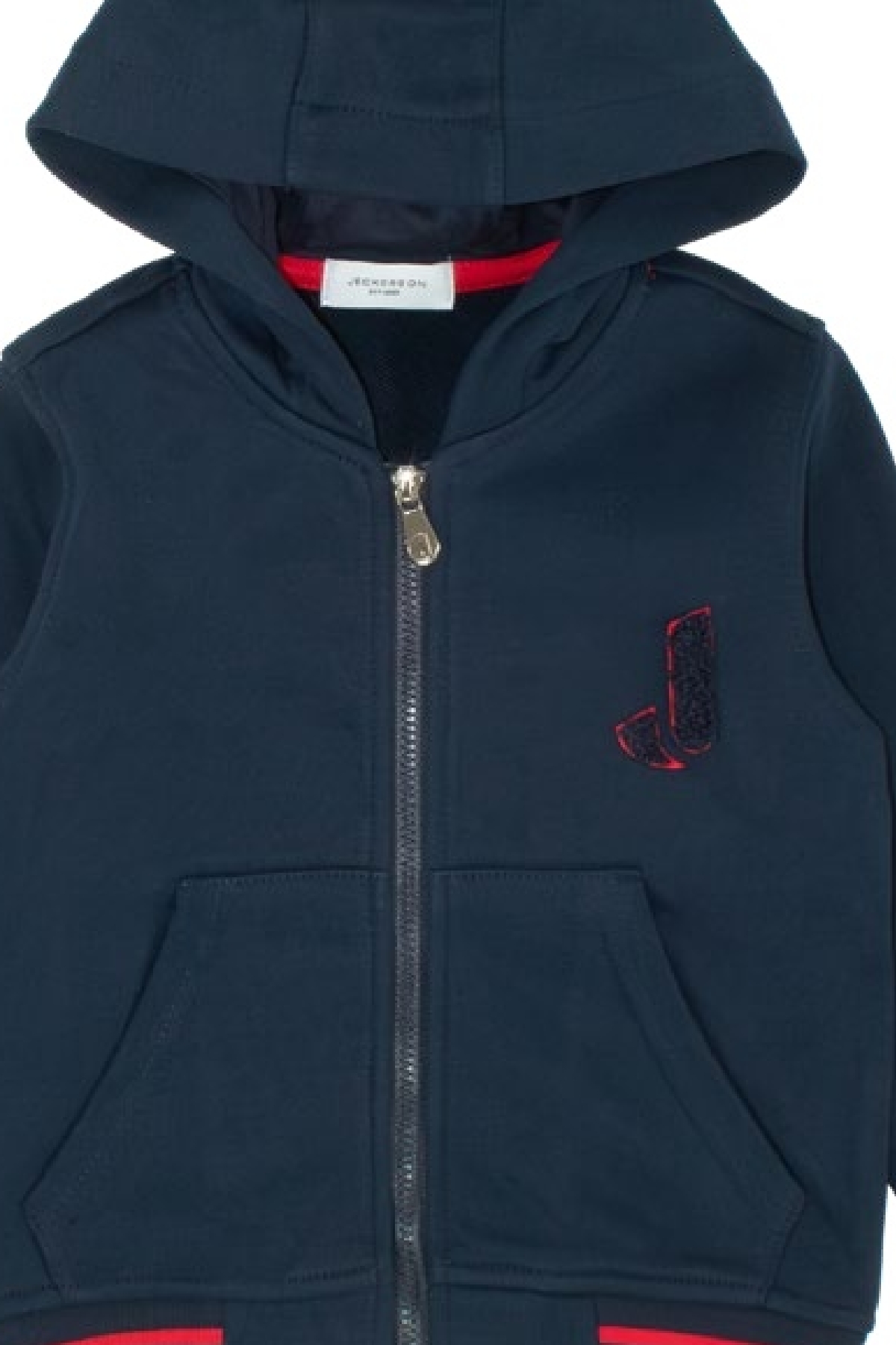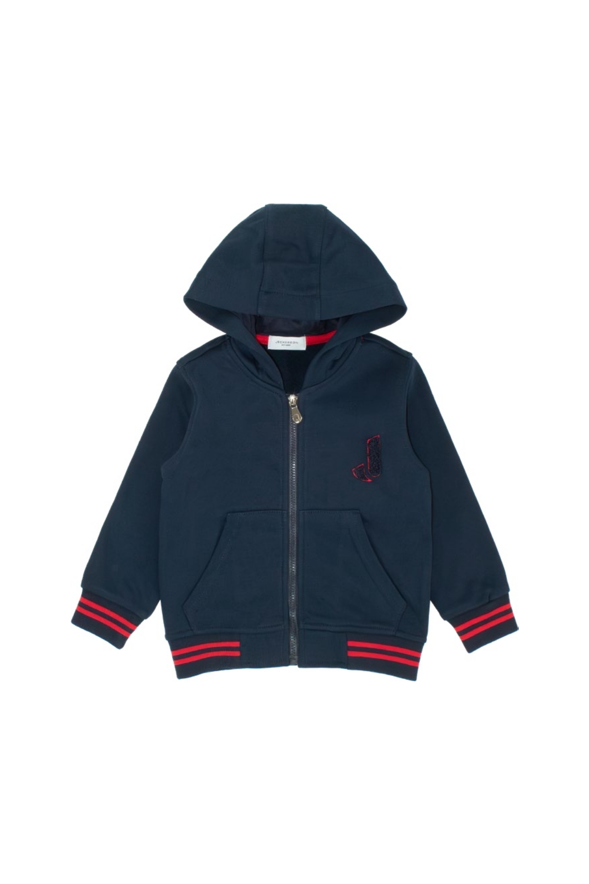 * Felpa con cappuccio per bambini* Chiusura frontale con zip intera* Tasche frontali a marsupio* Polsini e fondo con inserti a righe a contrasto* Logo ricamato sul petto* Tessuto morbido e confortevole