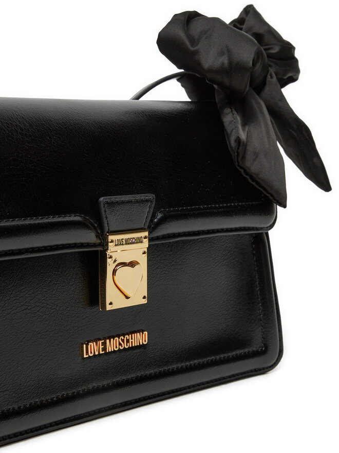 * Dettaglio frontale con logo Love Moschino inciso su placca metallica