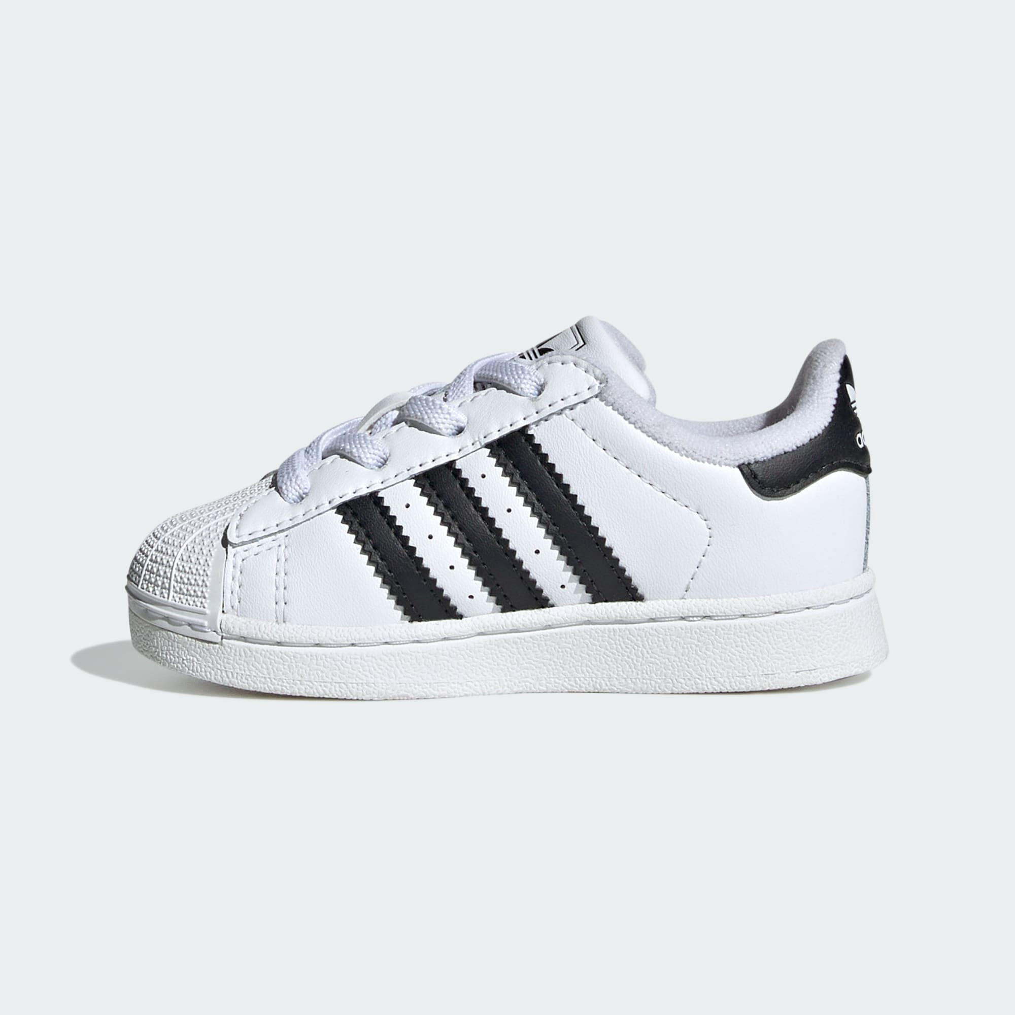 Le scarpe adidas Superstar, che hanno dominato le strade negli anni '90 e 2000, sono tornate con la loro forma e i dettagli classici, ora in una versione ridotta per i piedini dei più piccoli. Le iconiche sneaker con punta a conchiglia in gomma sono qui per dare il benvenuto alla prossima generazione, che potrà creare i propri ricordi con queste scarpe leggendarie pensate per esplorare il mondo. Queste scarpe per bambini sono dotate di lacci elastici e imbottitura extra, per garantire che facilità e comfort siano la priorità, così che i bambini possano giocare liberamente.