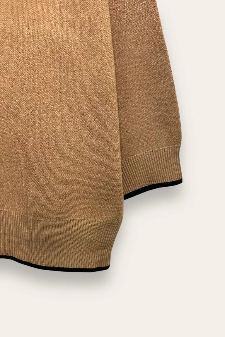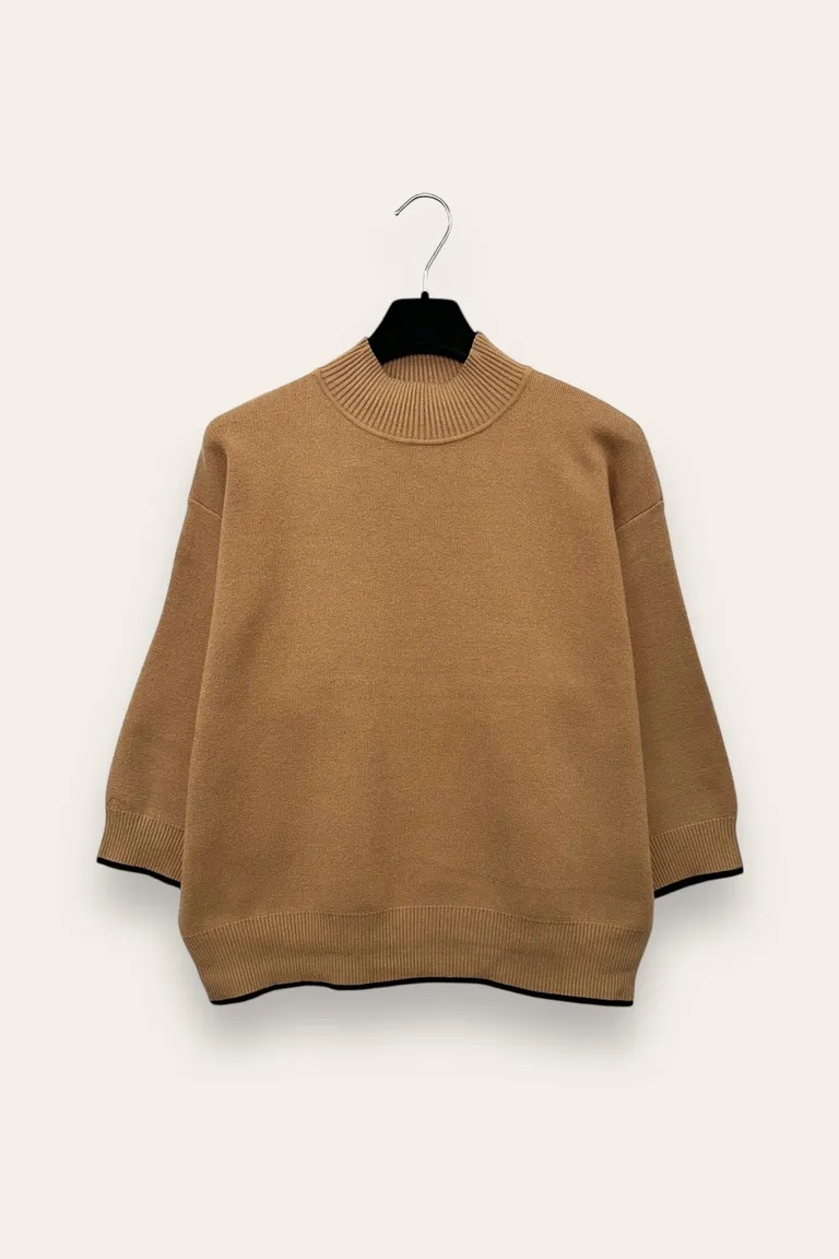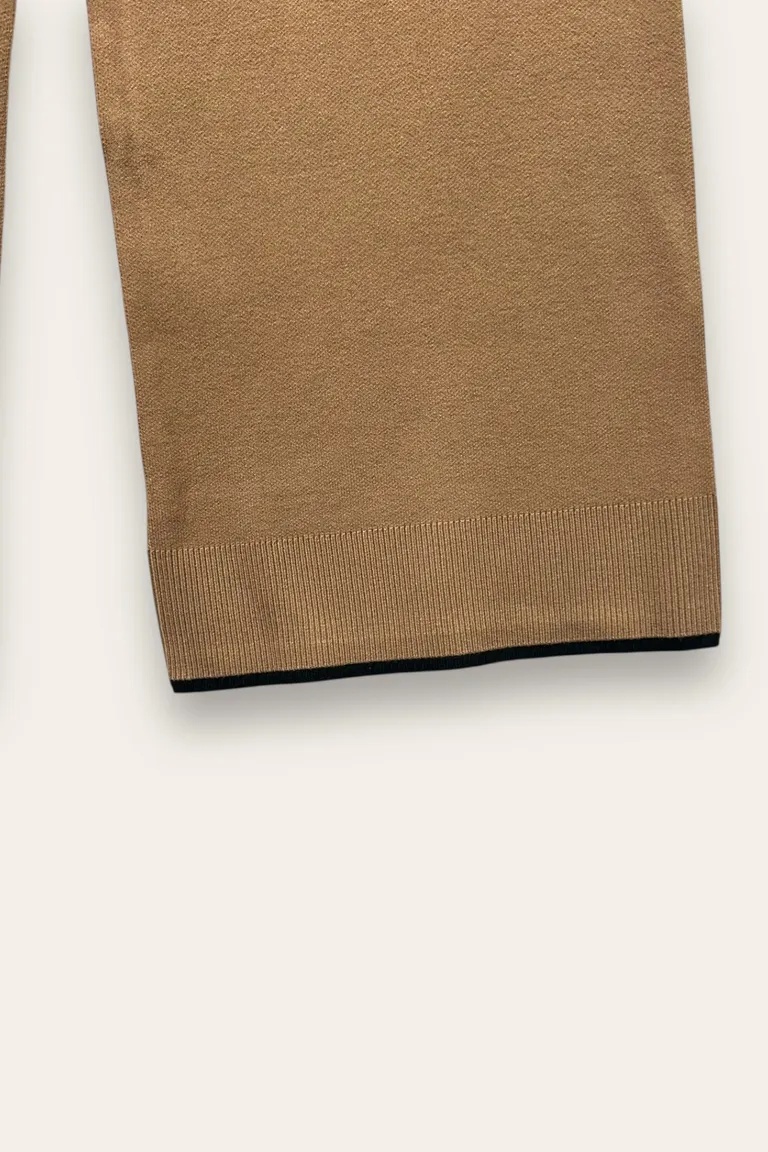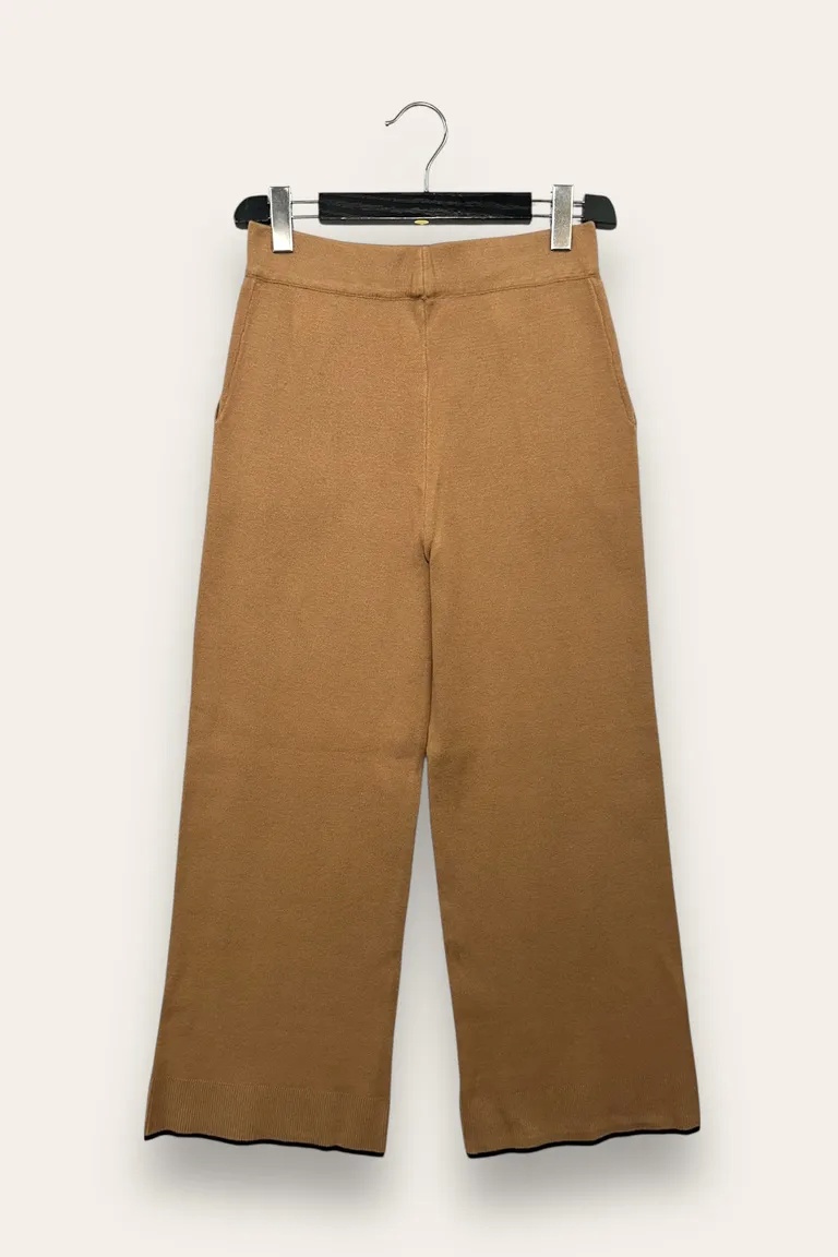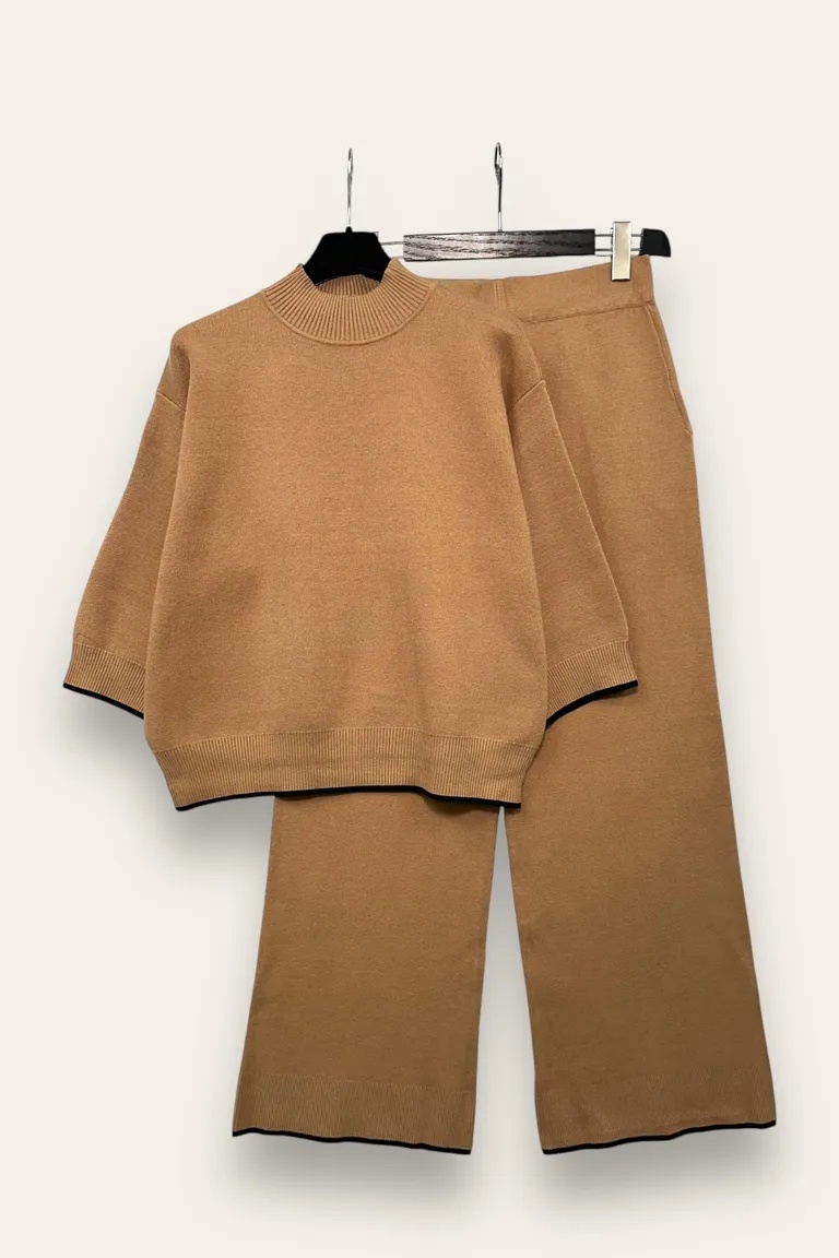 Completo maglia manica al gomito e pantalone a palazzo in maglia, fondo a contrasto